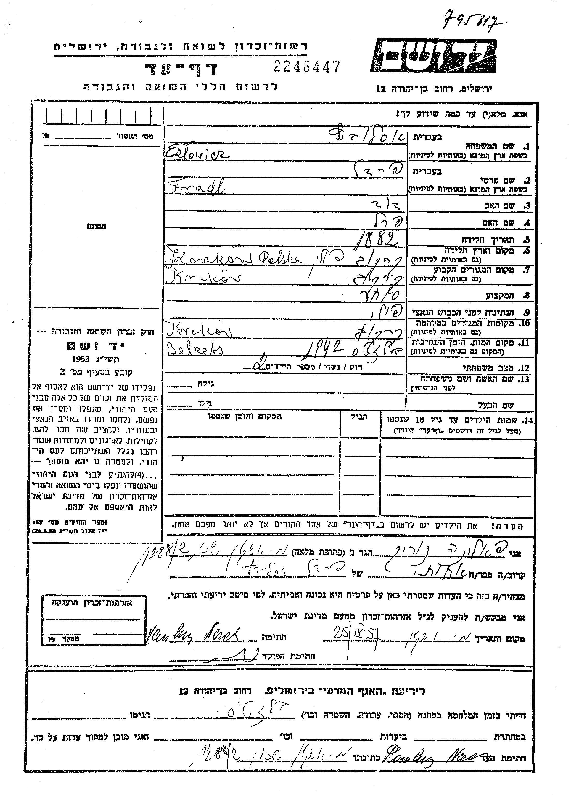 Fradl wurde in der Schoah ermordet. Todesort: Belzec, Polen im Jahr 1942.