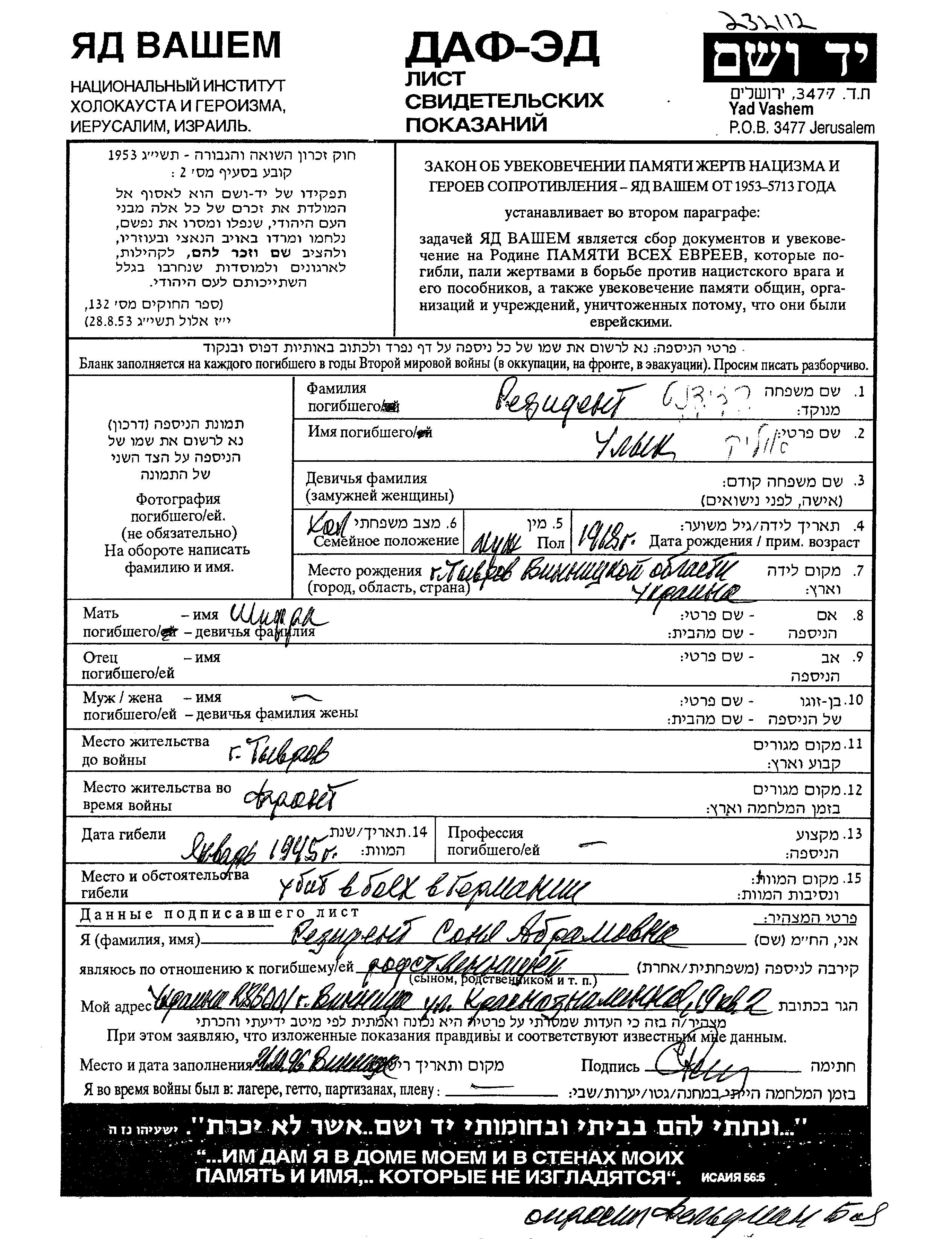 Suche nach einem Todesjahr im Zeitraum der Holocaust: 1933 bis 1945. Bitte wählen Sie 'Exakt' im Auswahlmenü, um nur nach einem einzelnen Jahr zu suchen, alternativ können Sie die flexibleren Optionen '+/- 2 Jahre' oder '+/- 5 Jahre' wählen.