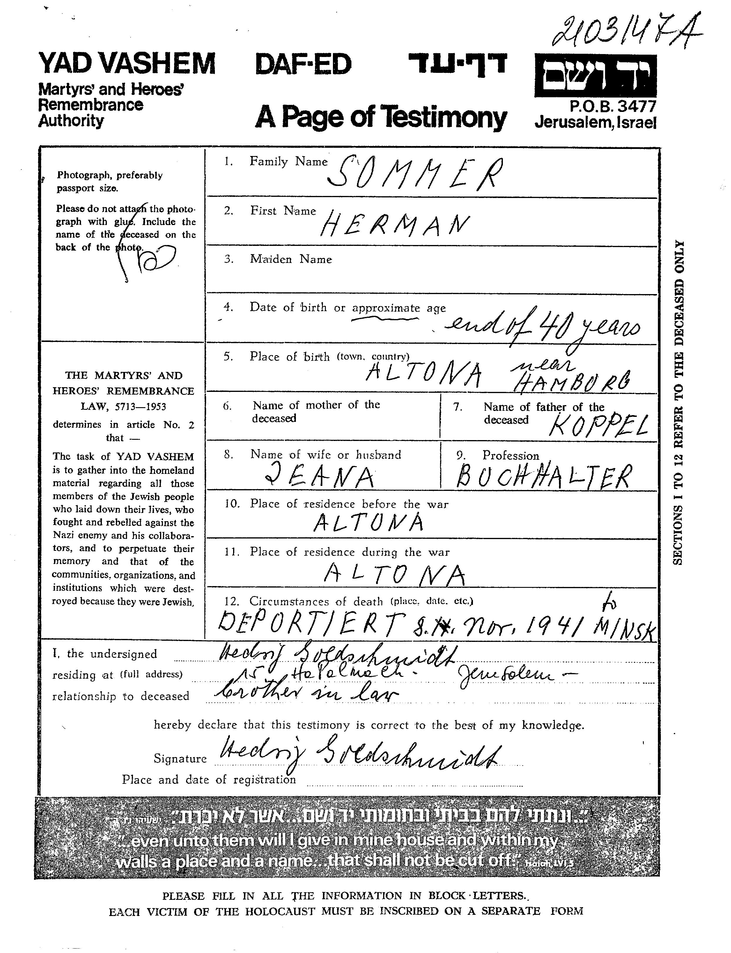 Herman wurde in der Schoah ermordet. Todesort: Minsk, Weißrussland (UdSSR).