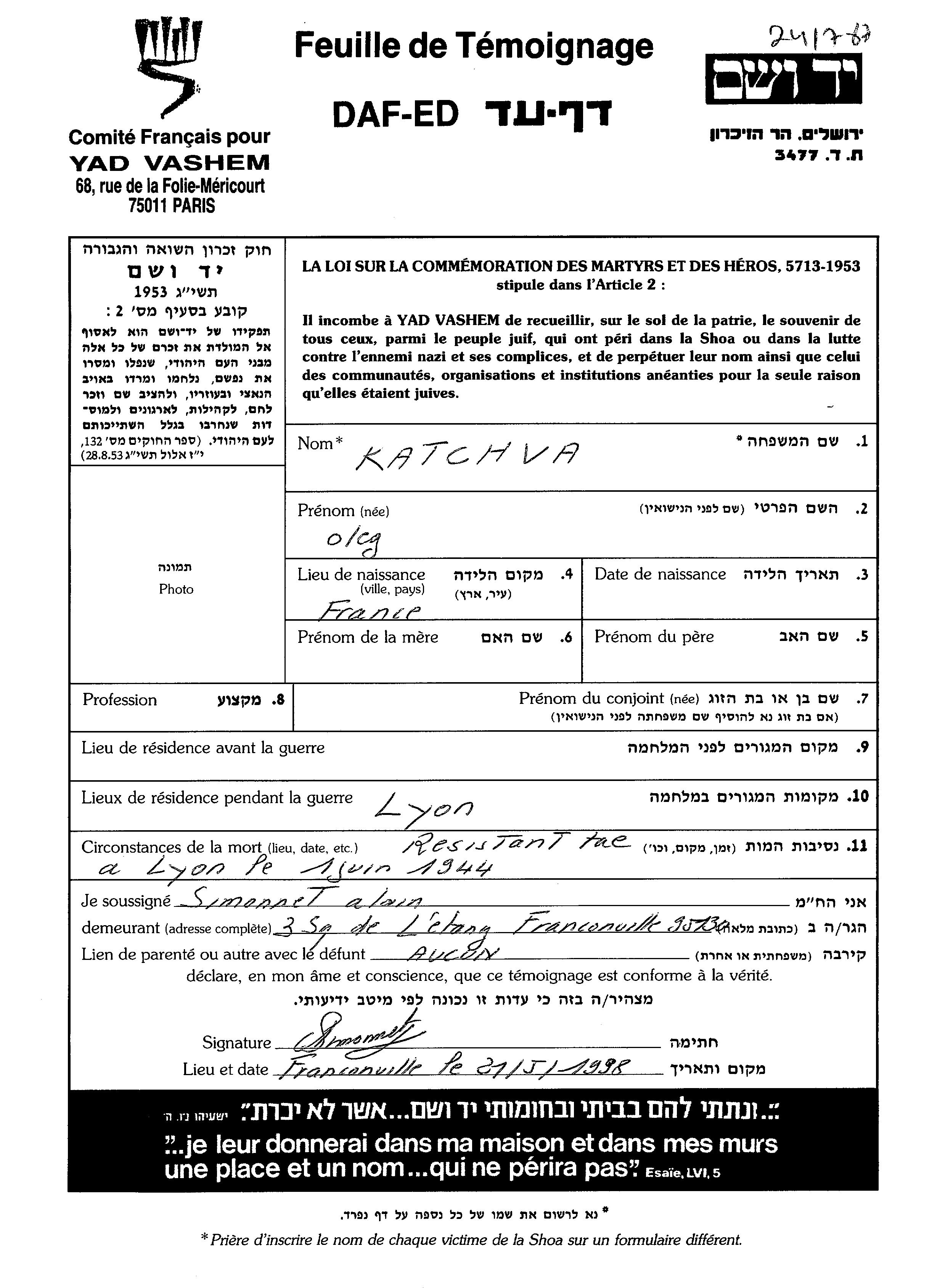 Oleg Katchva wurde in Frankreich geboren. Vor dem Zweiten Weltkrieg lebte er in Frankreich. Während des Krieges war er in Lyon, Frankreich.