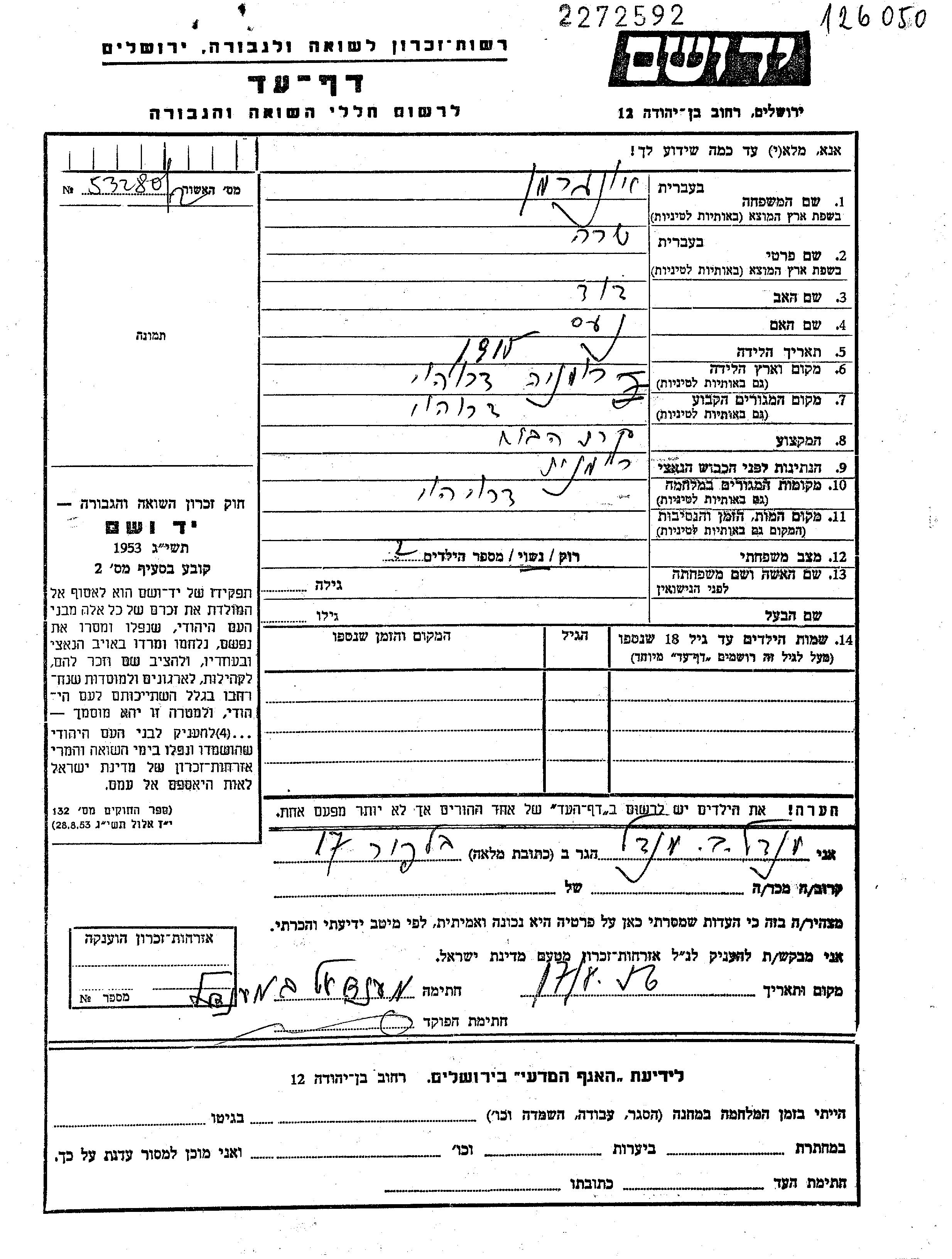Sara Ungerman, geb. Mandel wurde im Jahr 1915 in Drochia, Rumänien geboren. Sie war die Tochter von David und Nes. Sie war Hausfrau und mit Yitzkhak Verheiratet. Vor dem Zweiten Weltkrieg lebte sie in Drochia, Rumänien. Während des Krieges war sie in Drochia, Rumänien.