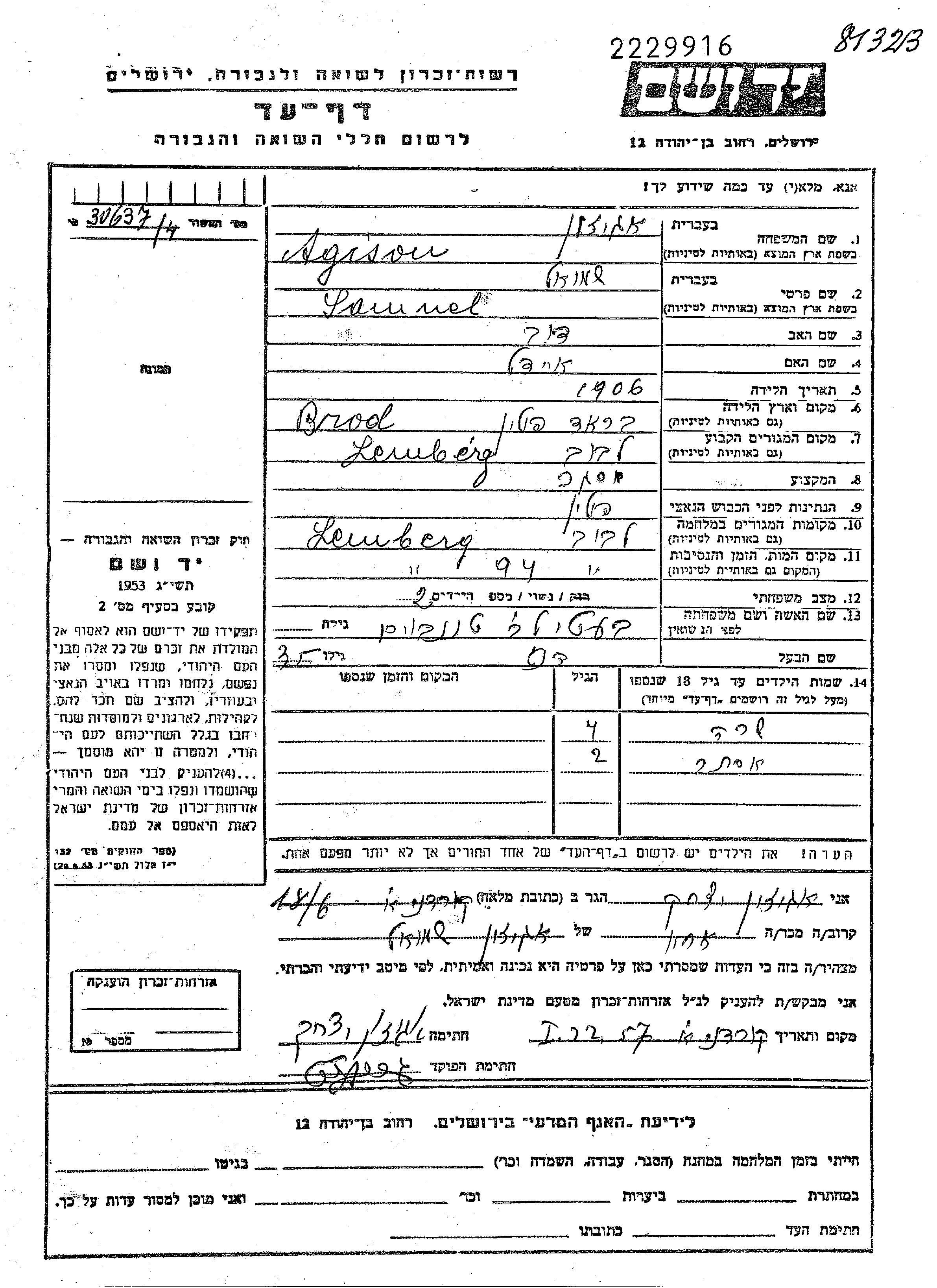 Shmuel wurde in der Schoah ermordet. Todesort: Lemberg, Polen im Jahr 1941.