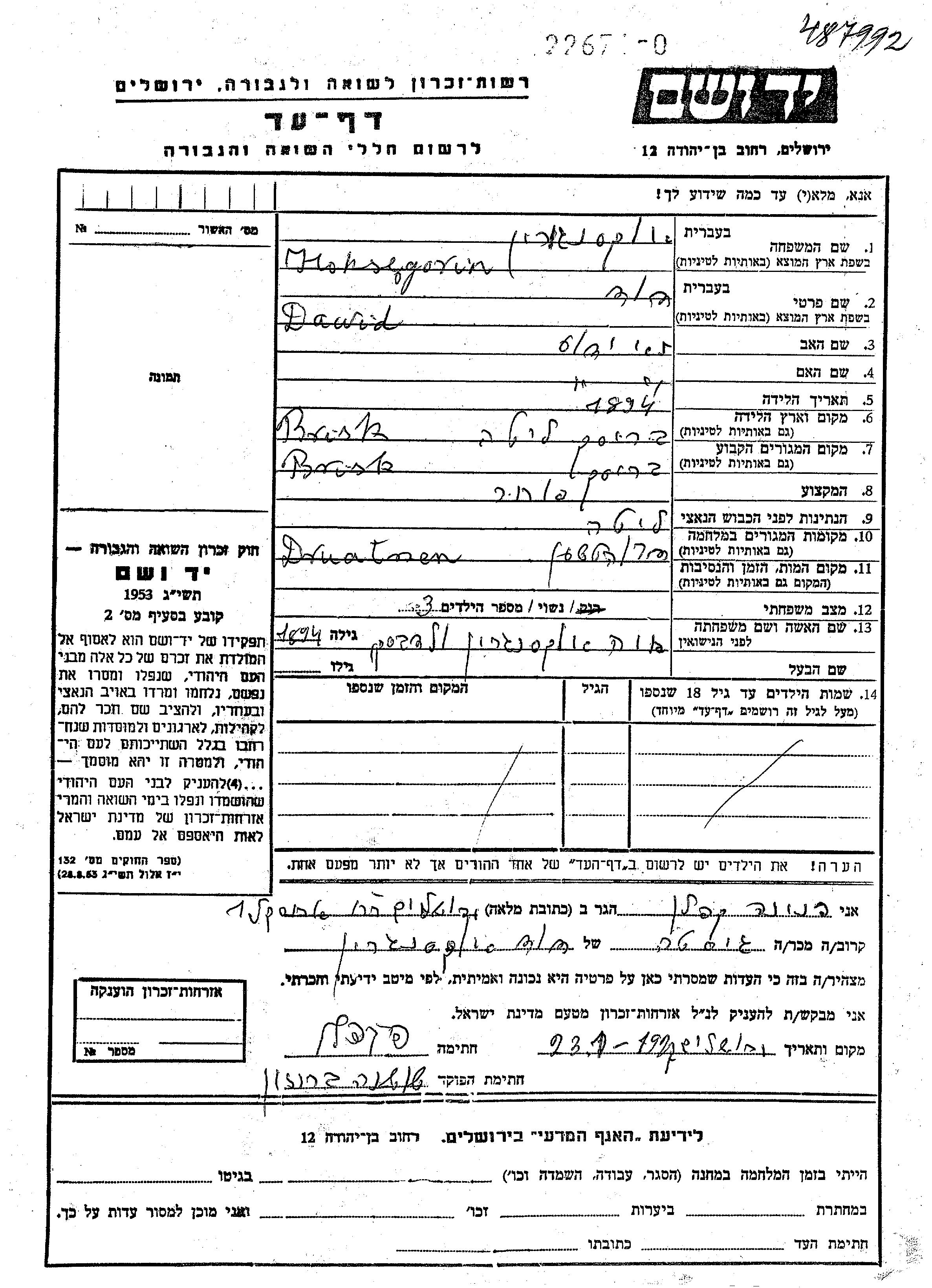Dawid Hoksengorin Oksengorn wurde im Jahr 1894 in Brisk d Lita, Polen geboren. Er war Kaufmann/-frau und mit Khaia, geb. Vladavski Verheiratet. Vor dem Zweiten Weltkrieg lebte er in Brisk d Lita, Polen. Während des Krieges war er in Druhcin, Polen.