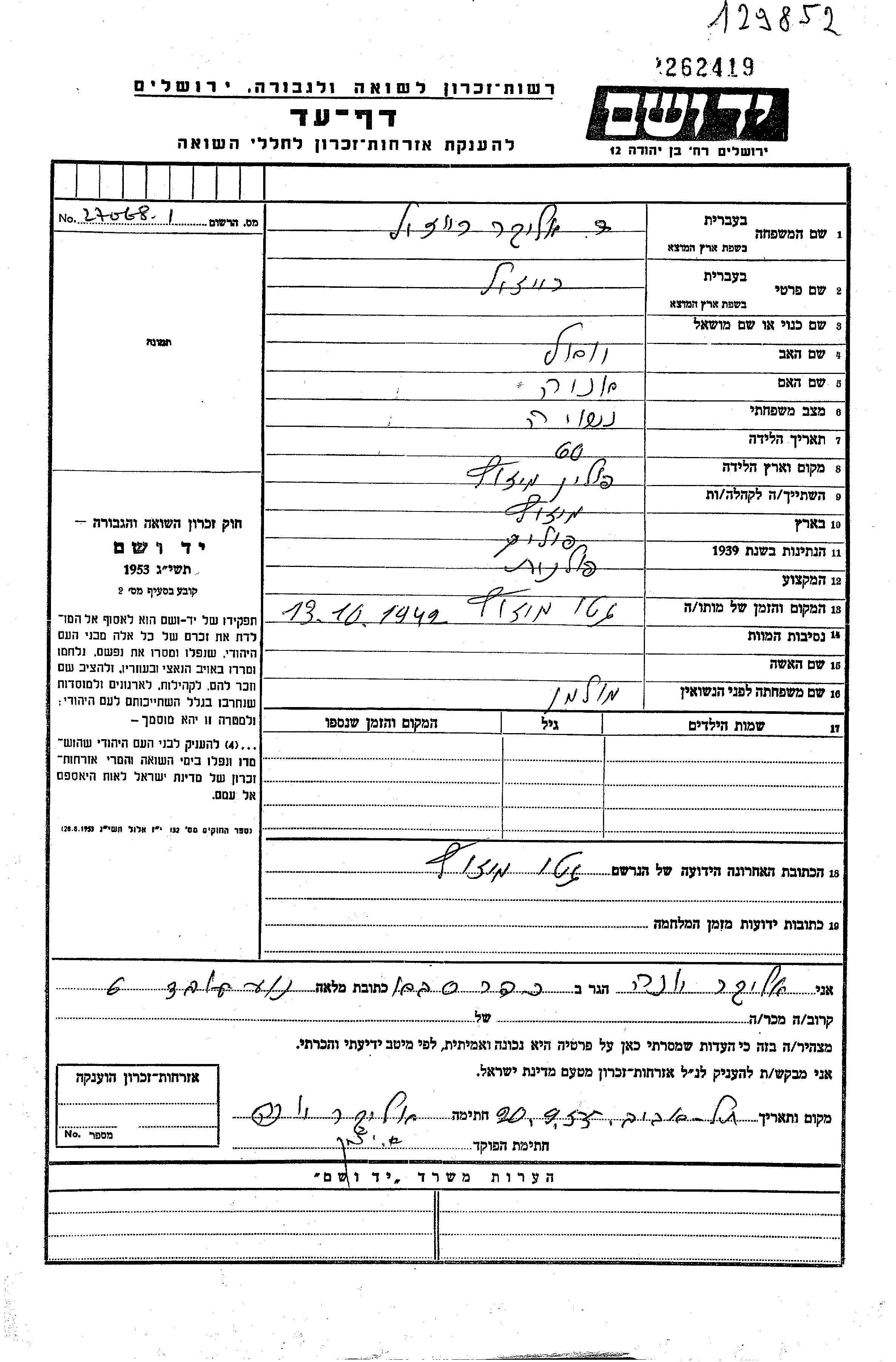 Raizel wurde in der Schoah ermordet. Todesort: Mizocz, Polen im Jahr 13/10/1942.