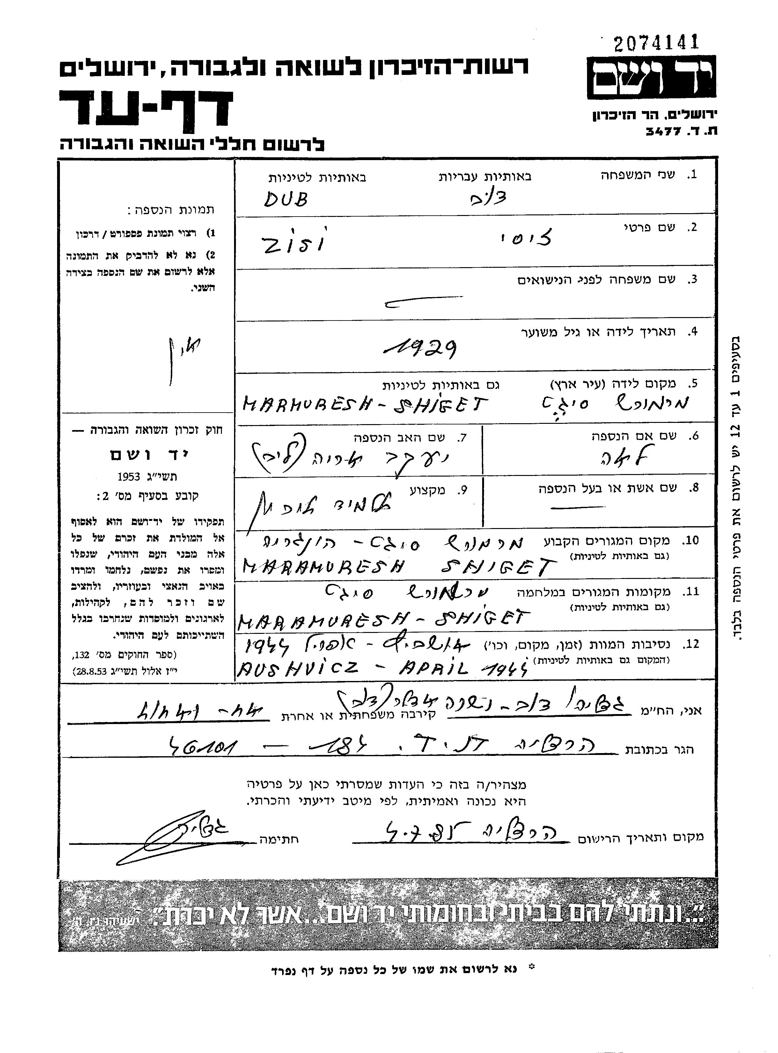 Zisi Dub Dov wurde im Jahr 1929 in Maramarossziget, Rumänien geboren. Sie war die Tochter von Yaakov Arie Leib und Lea, geb. Frid. Sie war Schüler/-in und Kind. Vor dem Zweiten Weltkrieg lebte sie in Maramarossziget, Rumänien. Während des Krieges war sie in Maramarossziget, Rumänien.