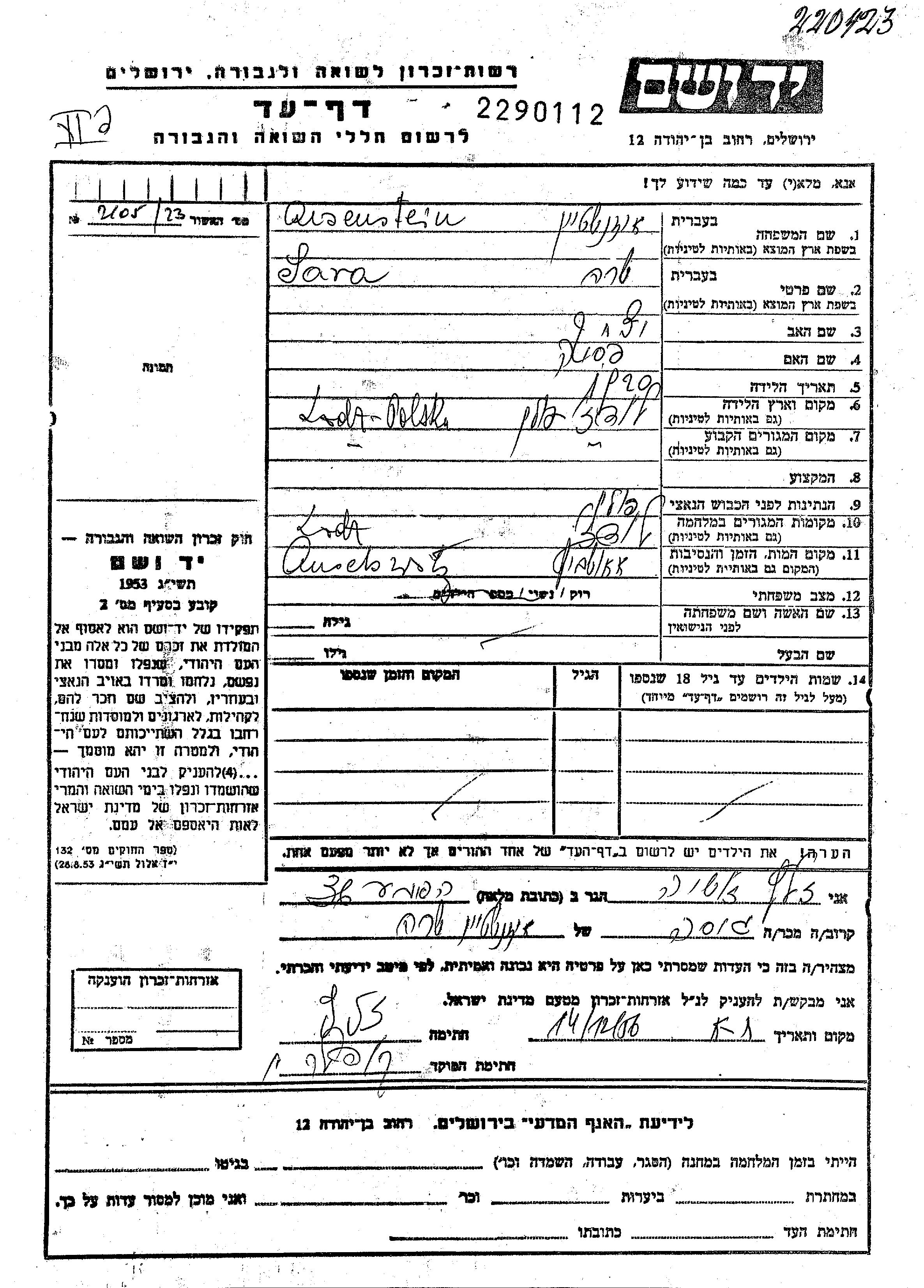 Sara wurde in der Schoah ermordet. Todesort: Auschwitz, Polen.