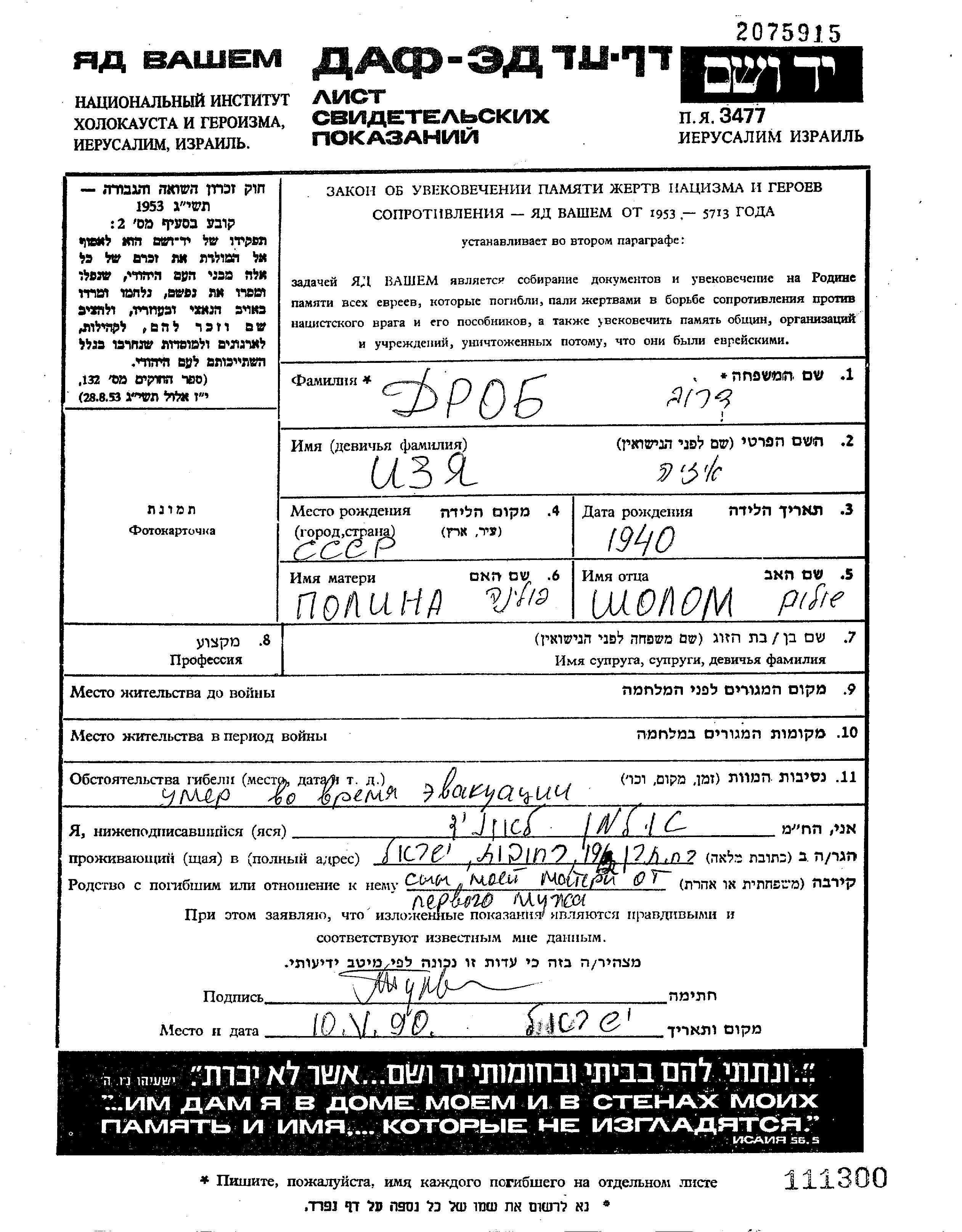 Izia Drob wurde in Sowjetunion geboren. Er war der Sohn von Sholom und Polina. Er war Kind.