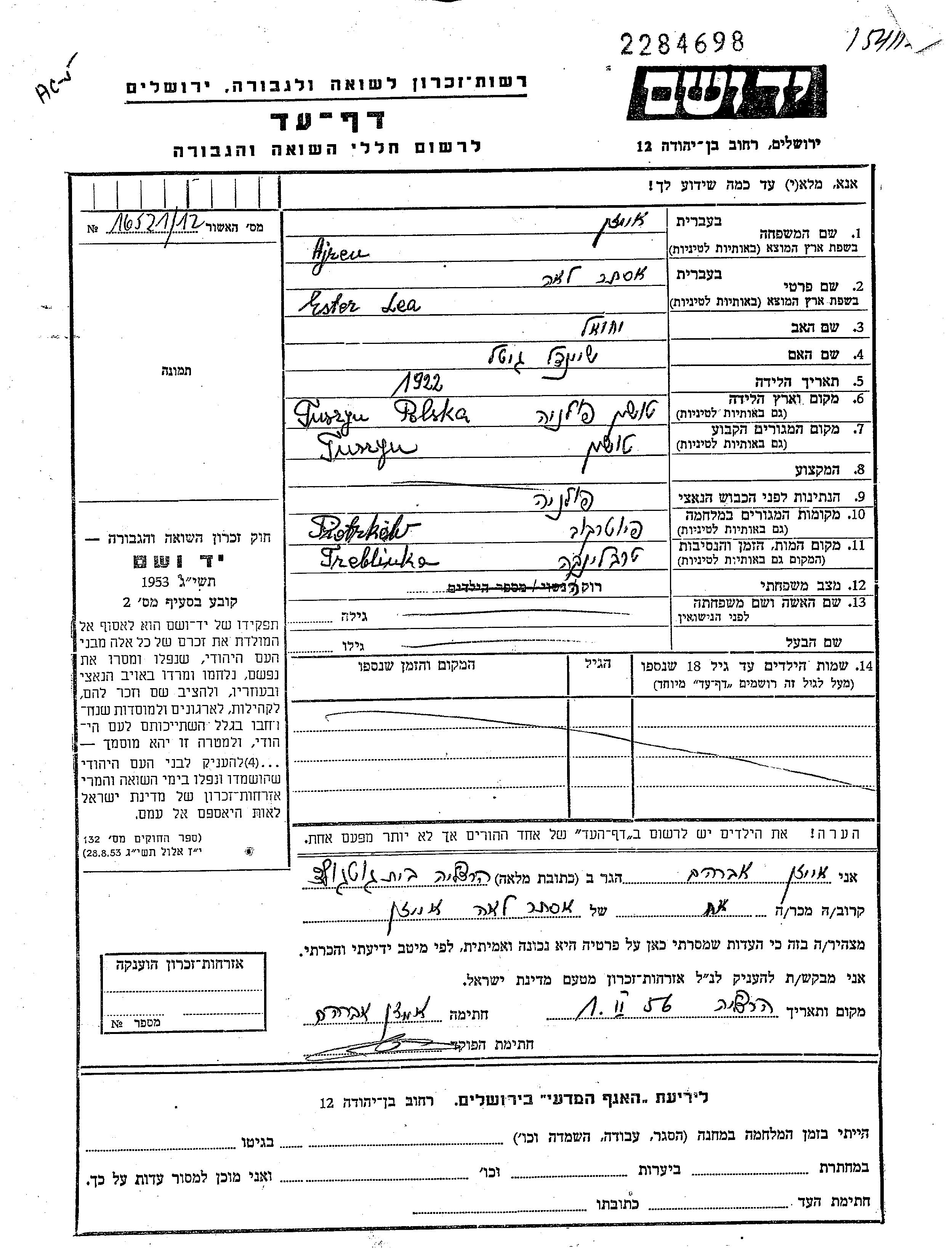 Ester Lea wurde in der Schoah ermordet. Todesort: Treblinka, Polen.