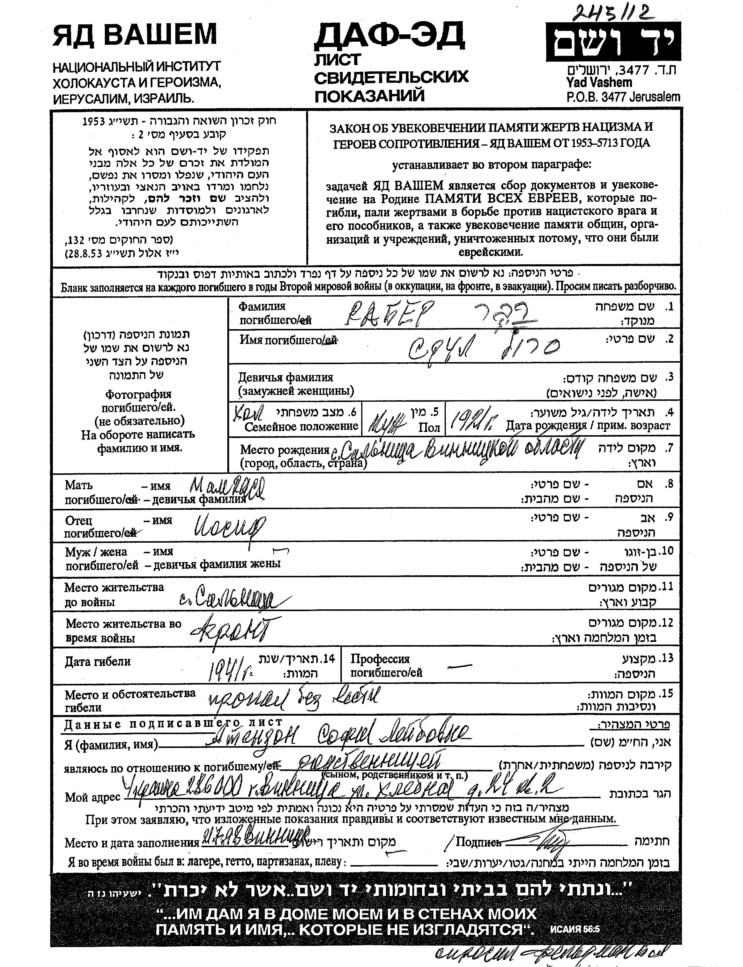 Ständiger Wohnsitz vor dem Krieg: Stadt/Ortschaft oder Bezirk/Region oder Land
