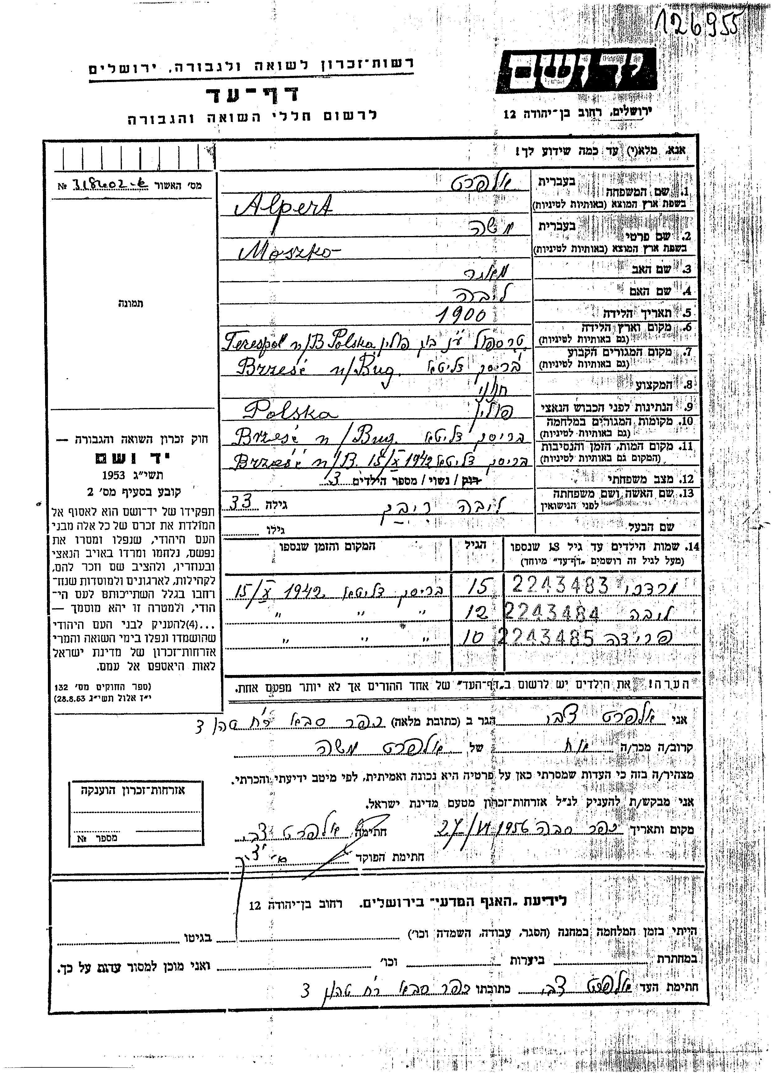 Alpert Mordekhai 1927 Brześć nad Bugiem, Polen Gedenkblatt