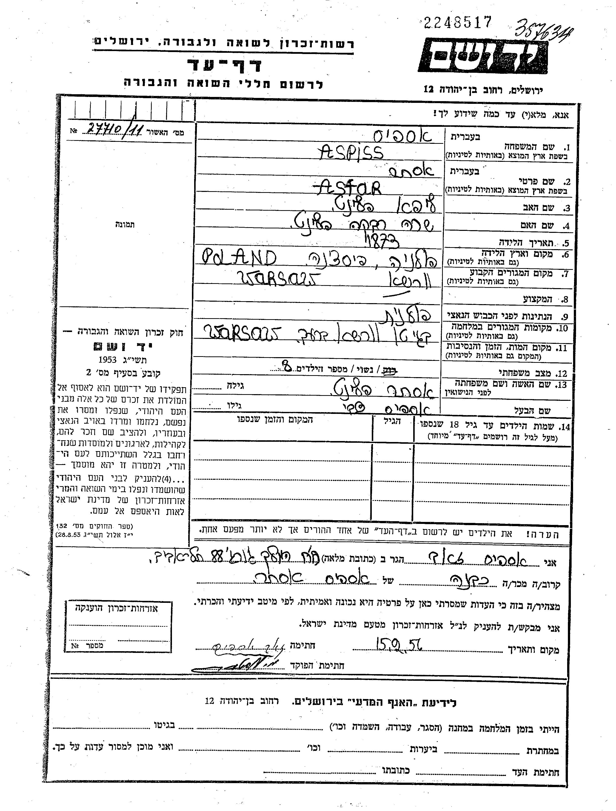 Astar wurde in der Schoah ermordet. Todesort: Warszawa, Polen.