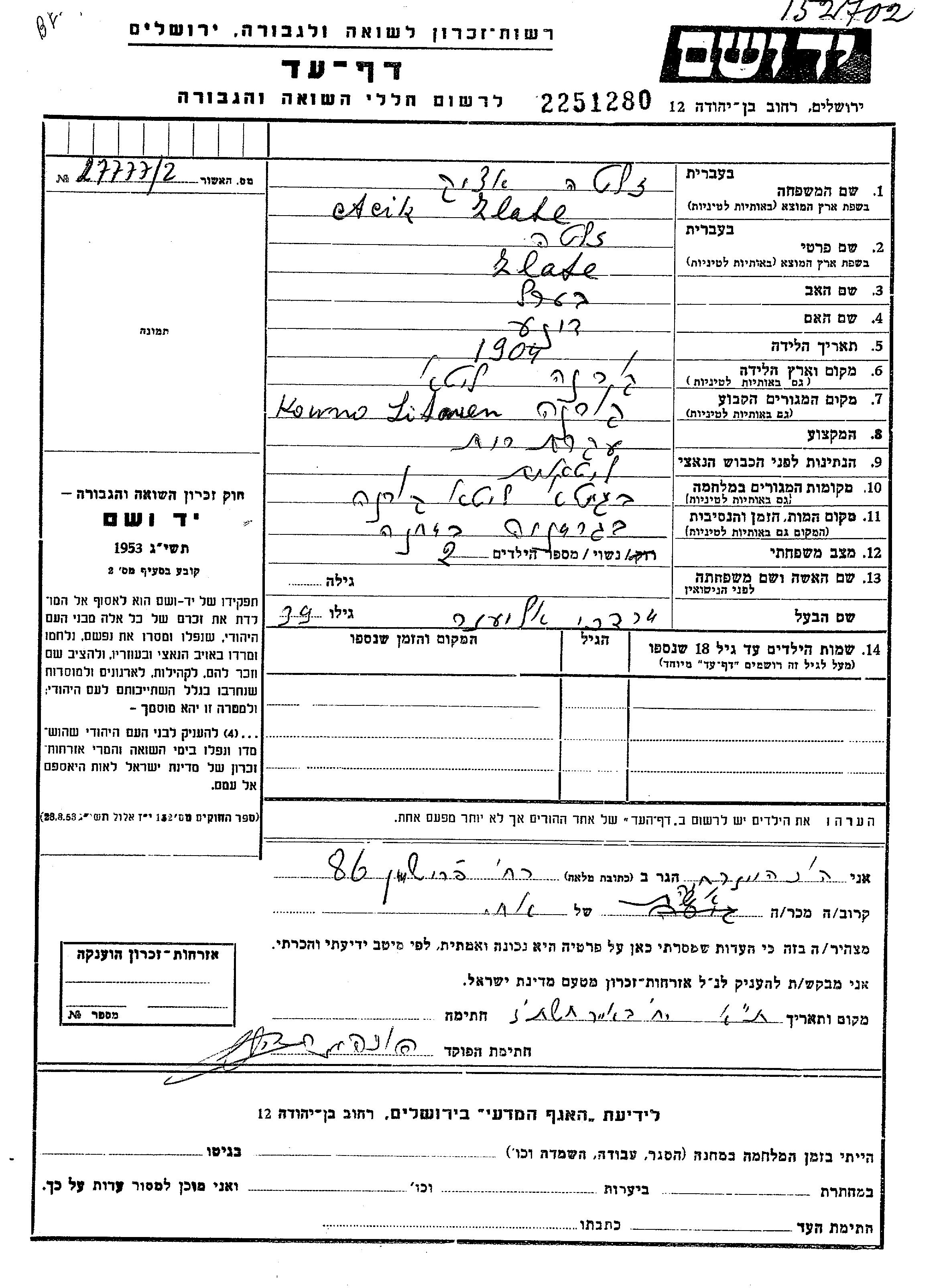 Zlate wurde in der Schoah ermordet. Todesort: <> (<>), Deutsches Reich.