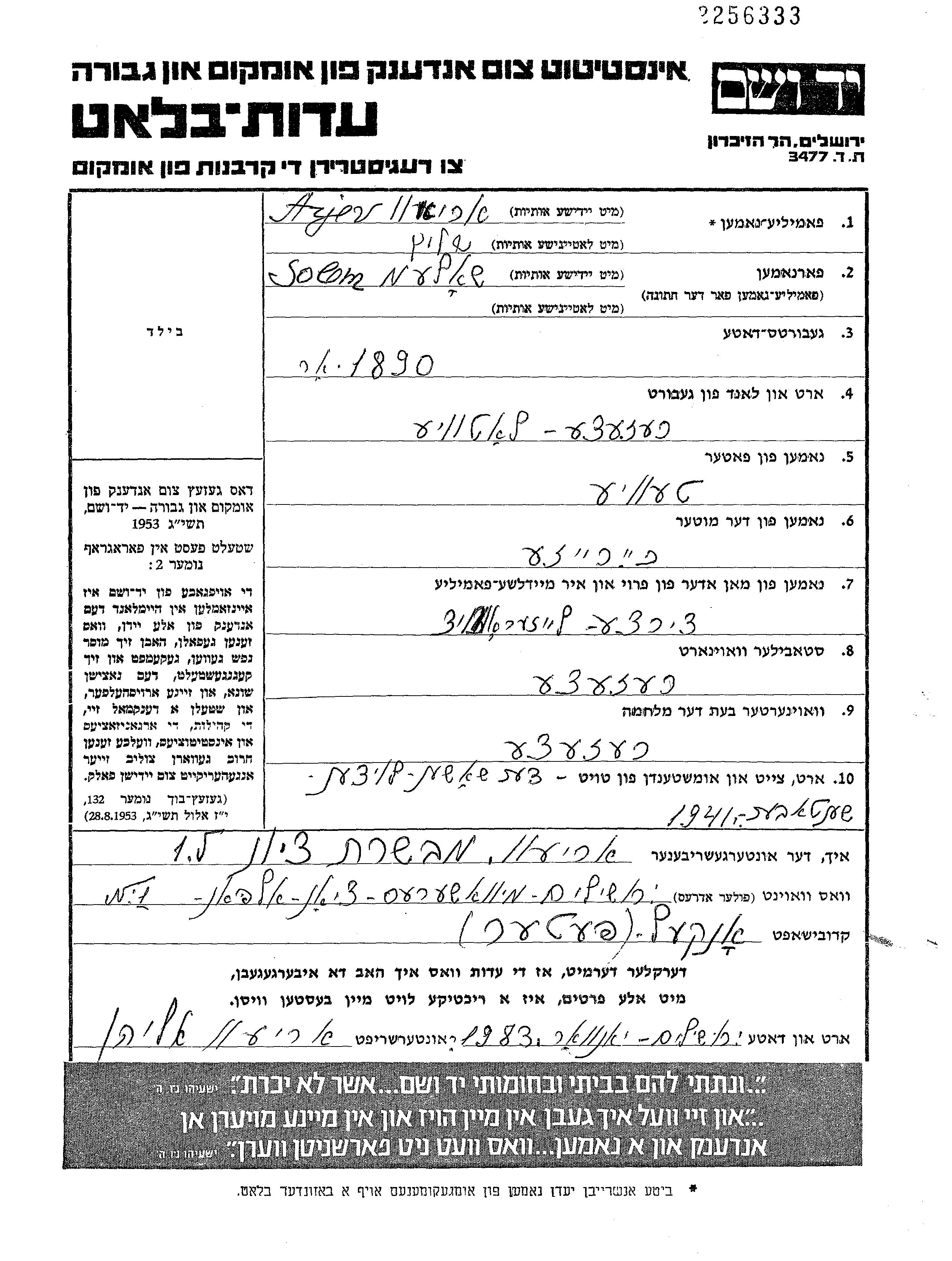 Yad Vashem - Gedenkblätter Sammlung