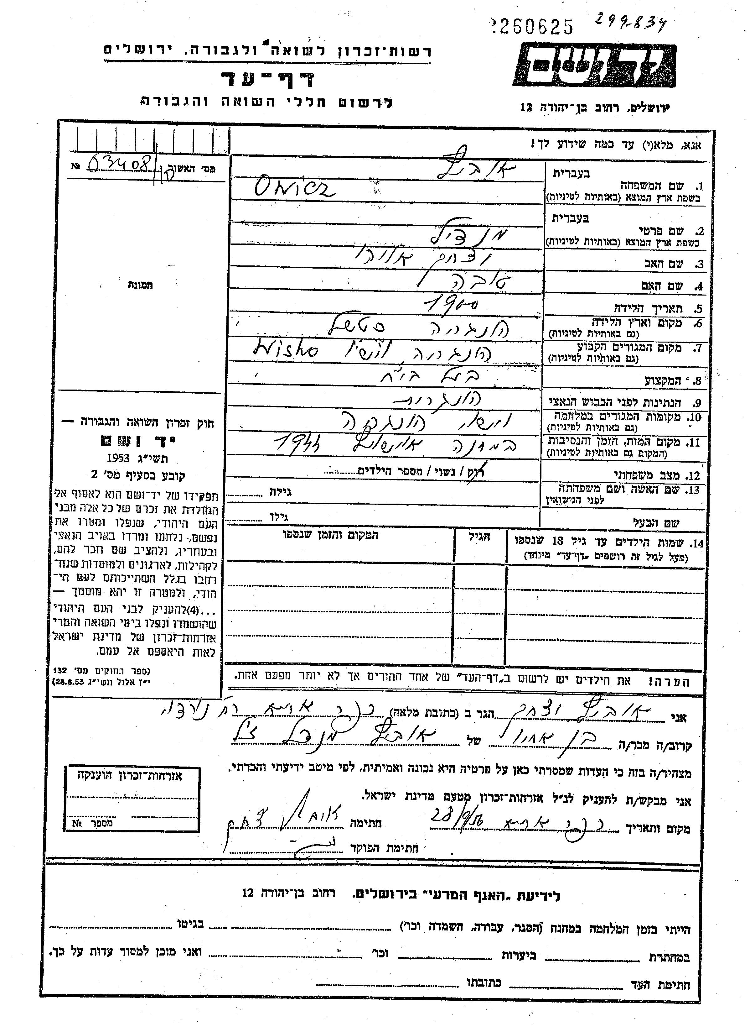 Mendil Owicz wurde im Jahr 1900 in Sicsel, Rumänien geboren. Er war der Sohn von Ytzkhak Eliahu und Tova. Er war Verheiratet. Vor dem Zweiten Weltkrieg lebte er in Viso, Rumänien. Während des Krieges war er in Viso, Rumänien.
