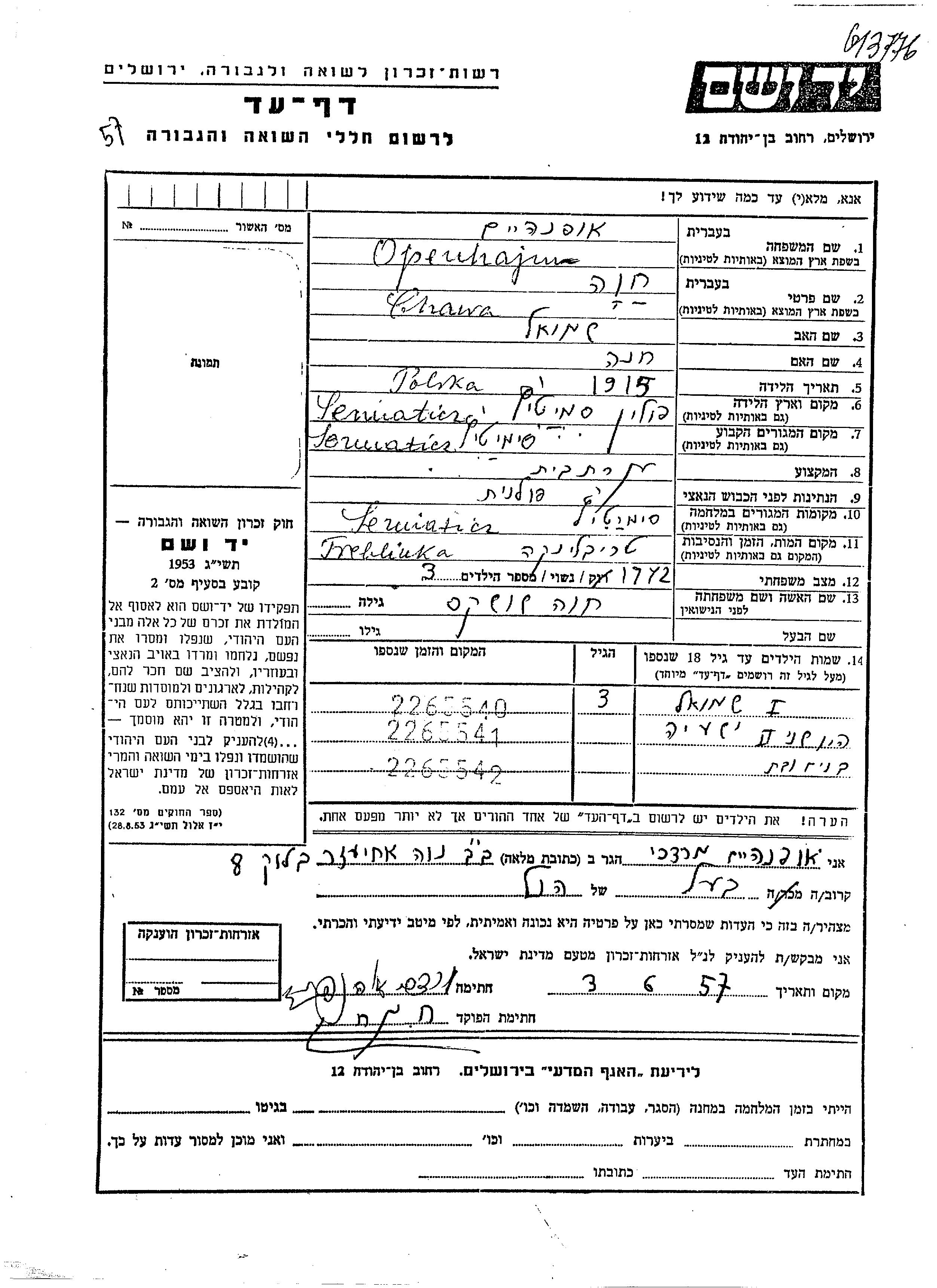 Shmuel wurde in der Schoah ermordet. Todesort: Treblinka, Polen im Jahr 1942.
