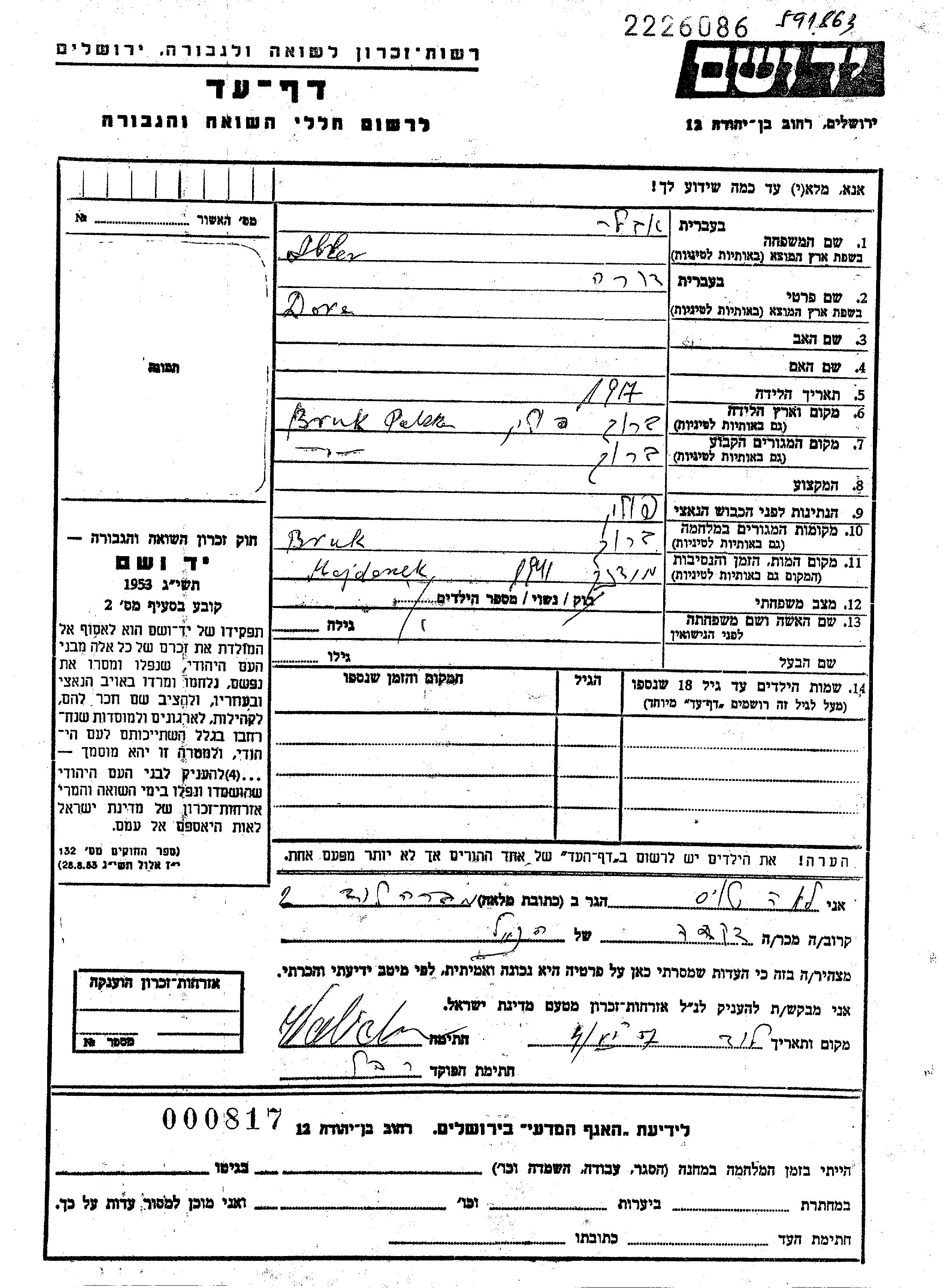 Dora Abler wurde im Jahr 1917 in Brok, Polen geboren. Sie war mit Rywn Verheiratet. Vor dem Zweiten Weltkrieg lebte sie in Brok, Polen. Während des Krieges war sie in Brok, Polen.