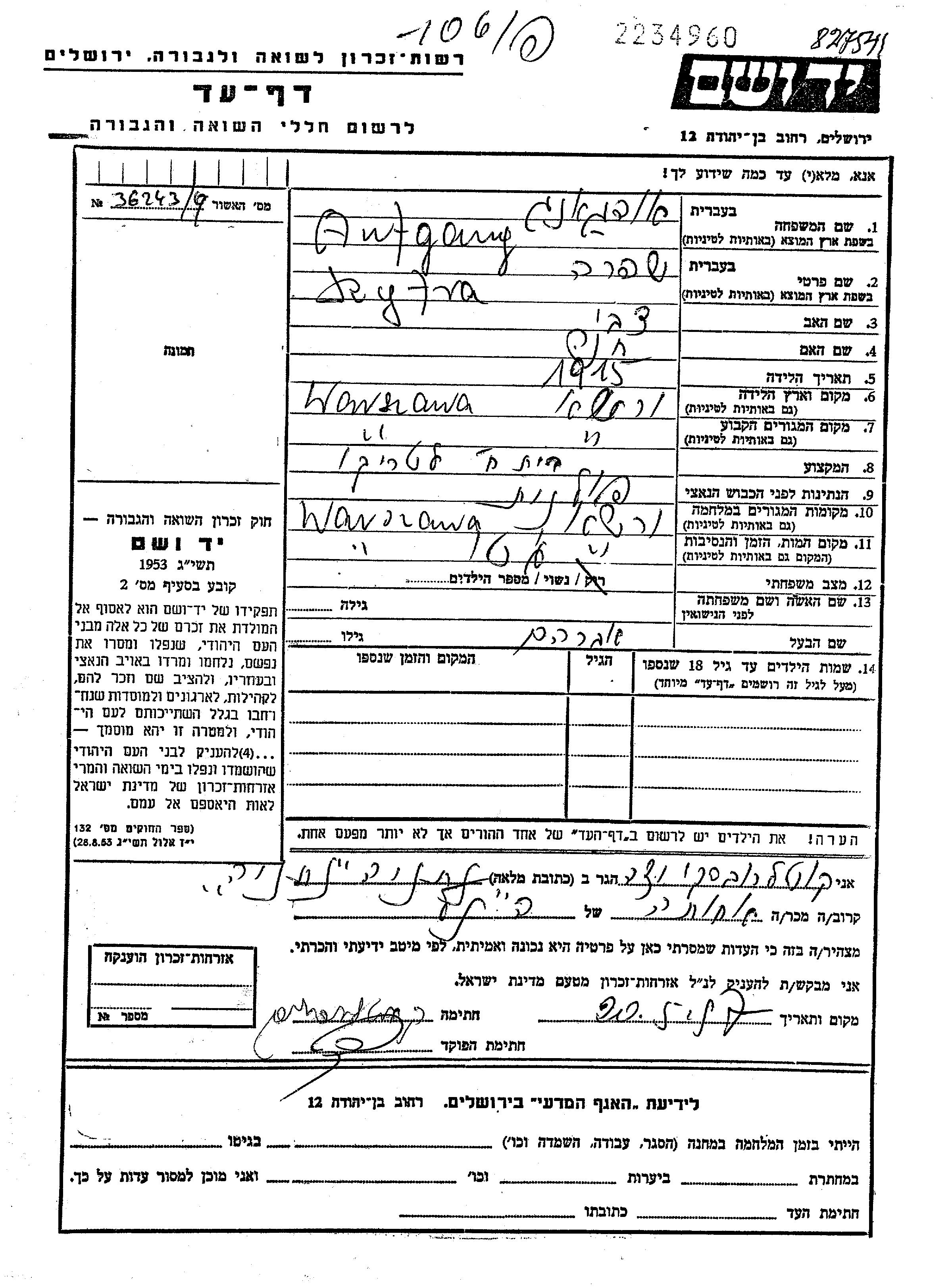 Szyfra Aufgang wurde im Jahr 1915 in Warszawa, Polen geboren. Sie war die Tochter von Tzvi und Khana. Sie war Industrielle/-r und mit Avraam Verheiratet. Vor dem Zweiten Weltkrieg lebte sie in Warszawa, Polen. Während des Krieges war sie in Warszawa, Polen.