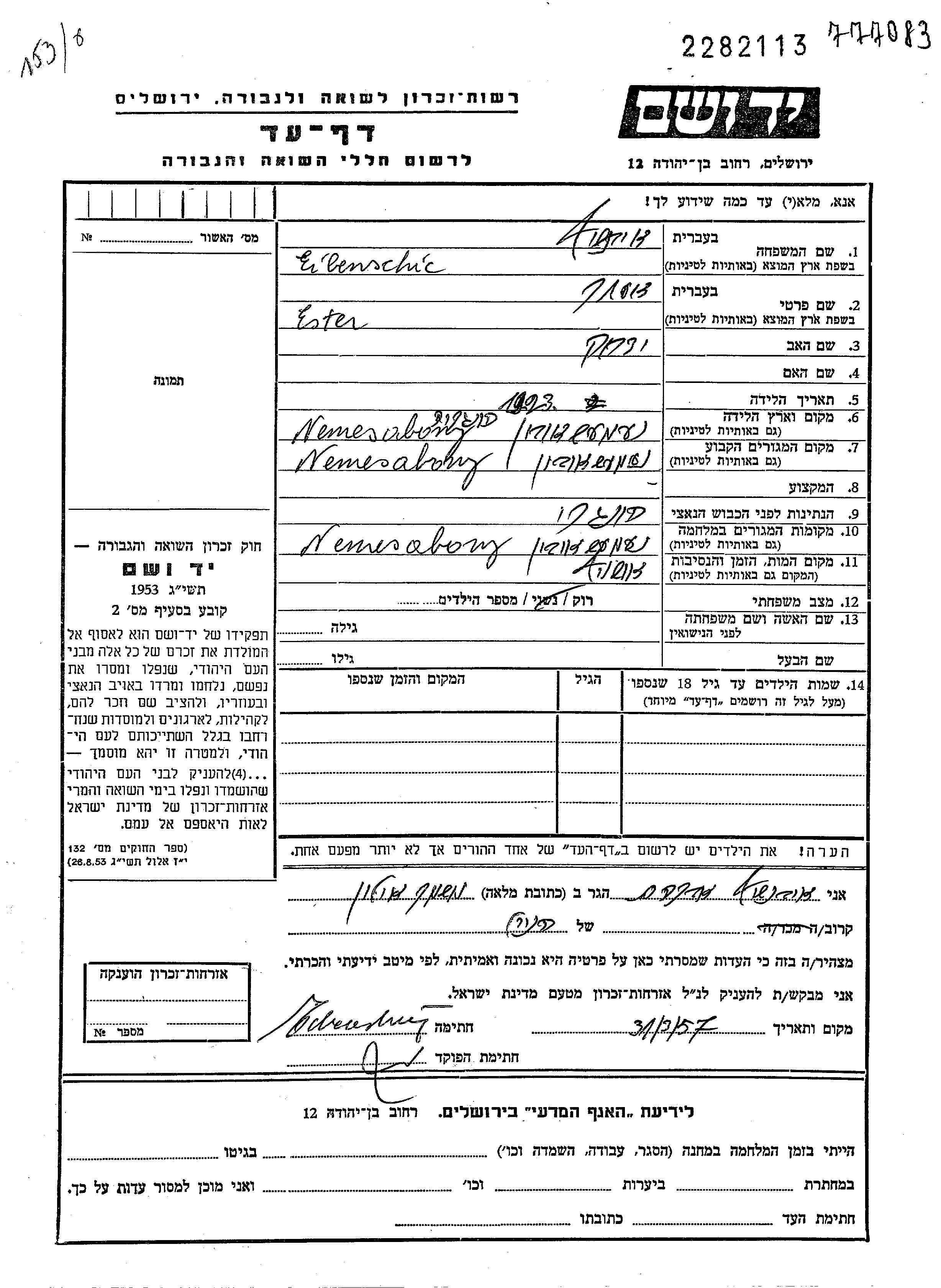 Ester wurde in der Schoah ermordet. Todesort: Auschwitz, Polen.