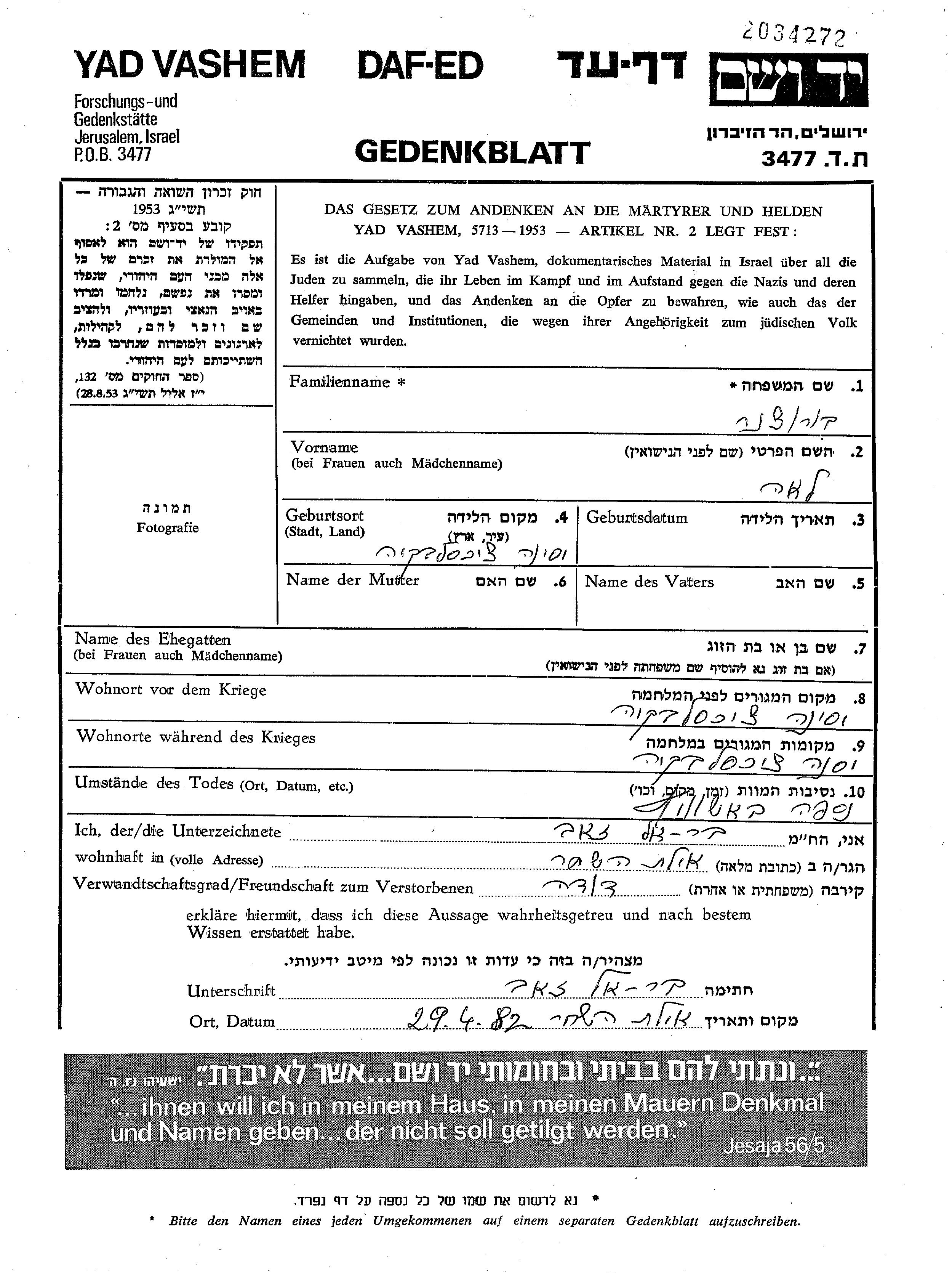 Lea wurde in der Schoah ermordet. Todesort: Auschwitz, Polen.