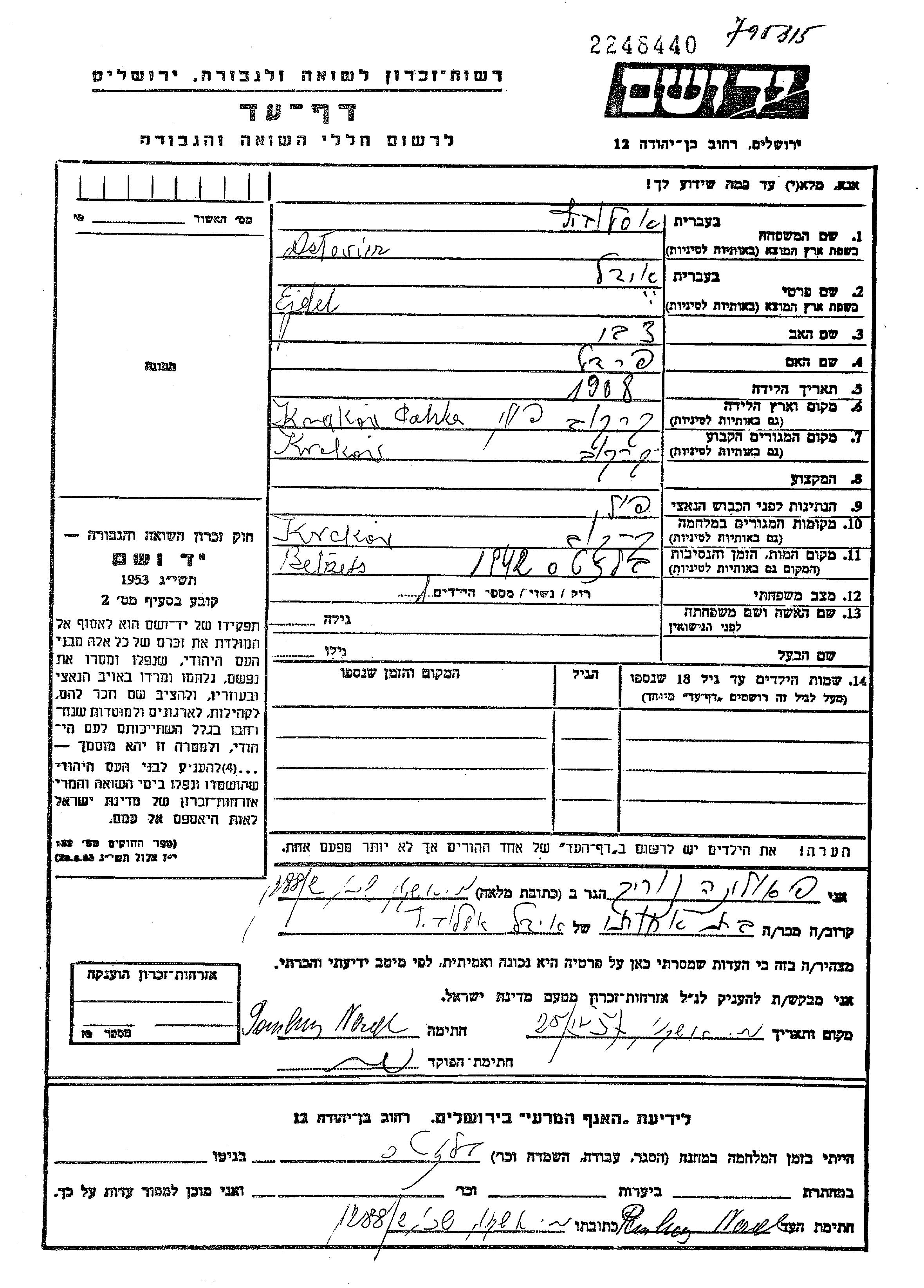 Ejdel wurde in der Schoah ermordet. Todesort: Belzec, Polen im Jahr 1942.
