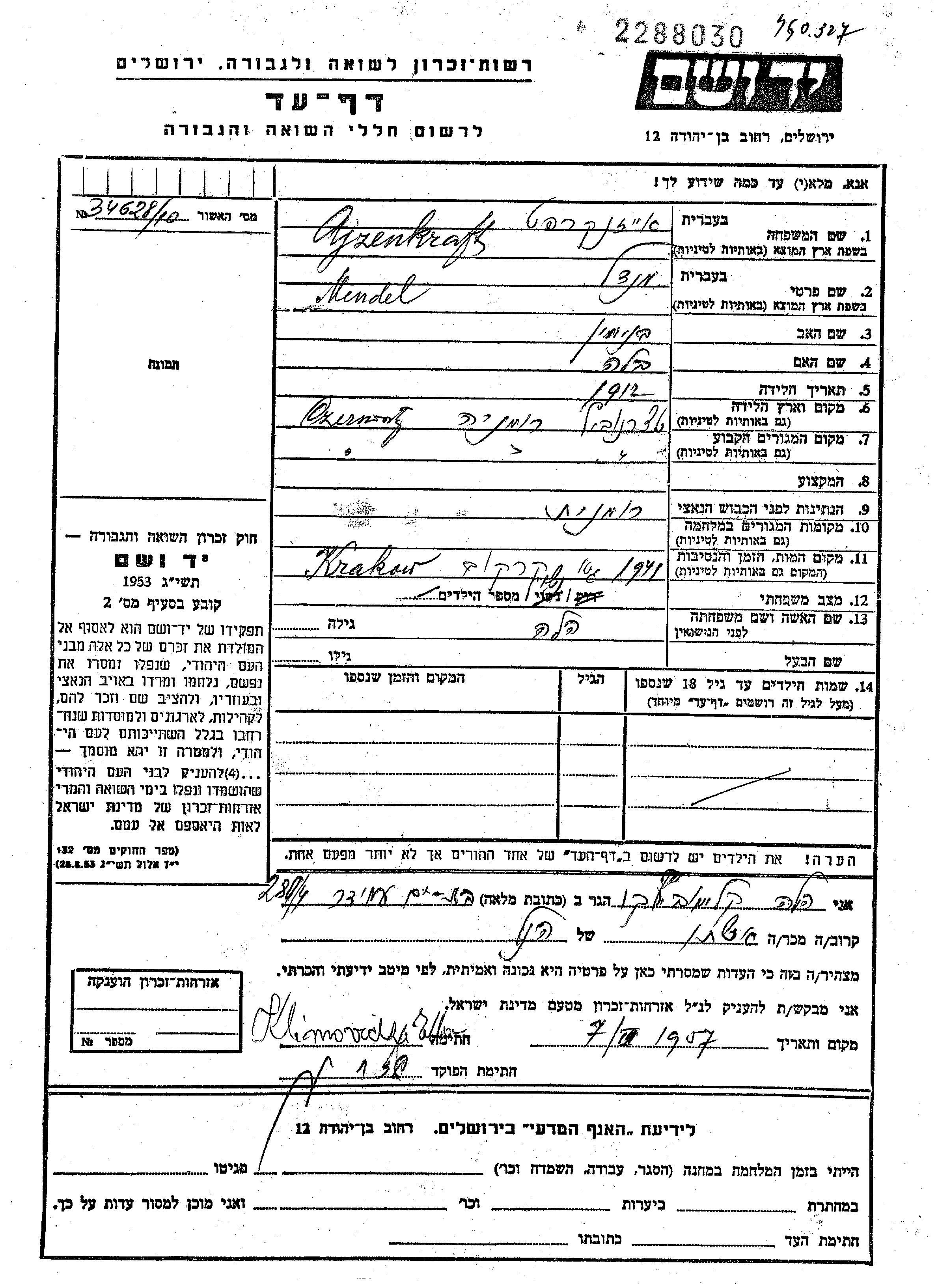 Mendel wurde in der Schoah ermordet. Todesort: Krakow, Polen im Jahr 1941.