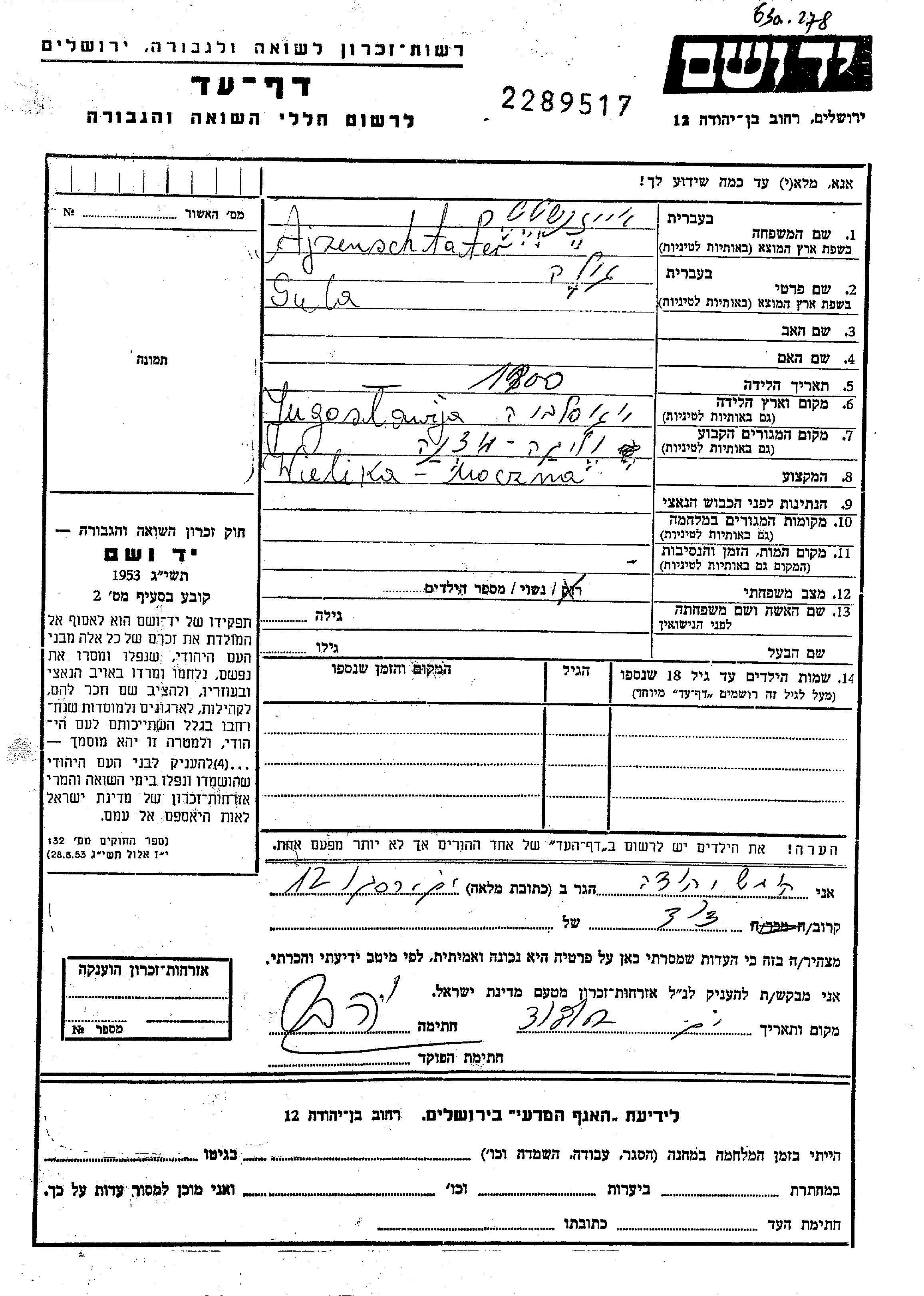 Gula Giula Ajzenschtater wurde im Jahr 1900 in Jugoslawien geboren. Vor dem Zweiten Weltkrieg lebte sie in Velika Mucna, Jugoslawien. Während des Krieges war sie in Jugoslawien.