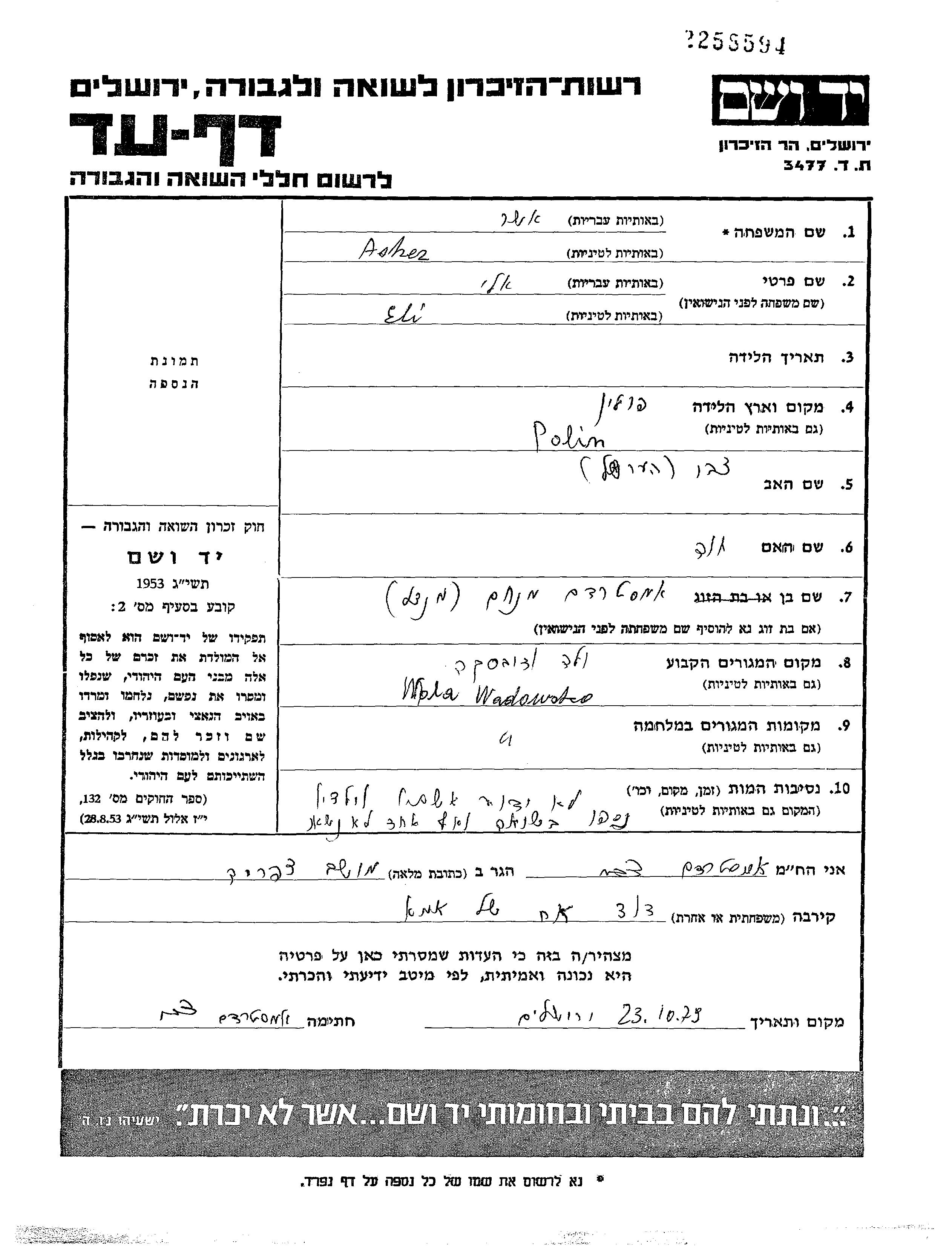 Asher Eli Wola Wadowska, Polen Gedenkblatt