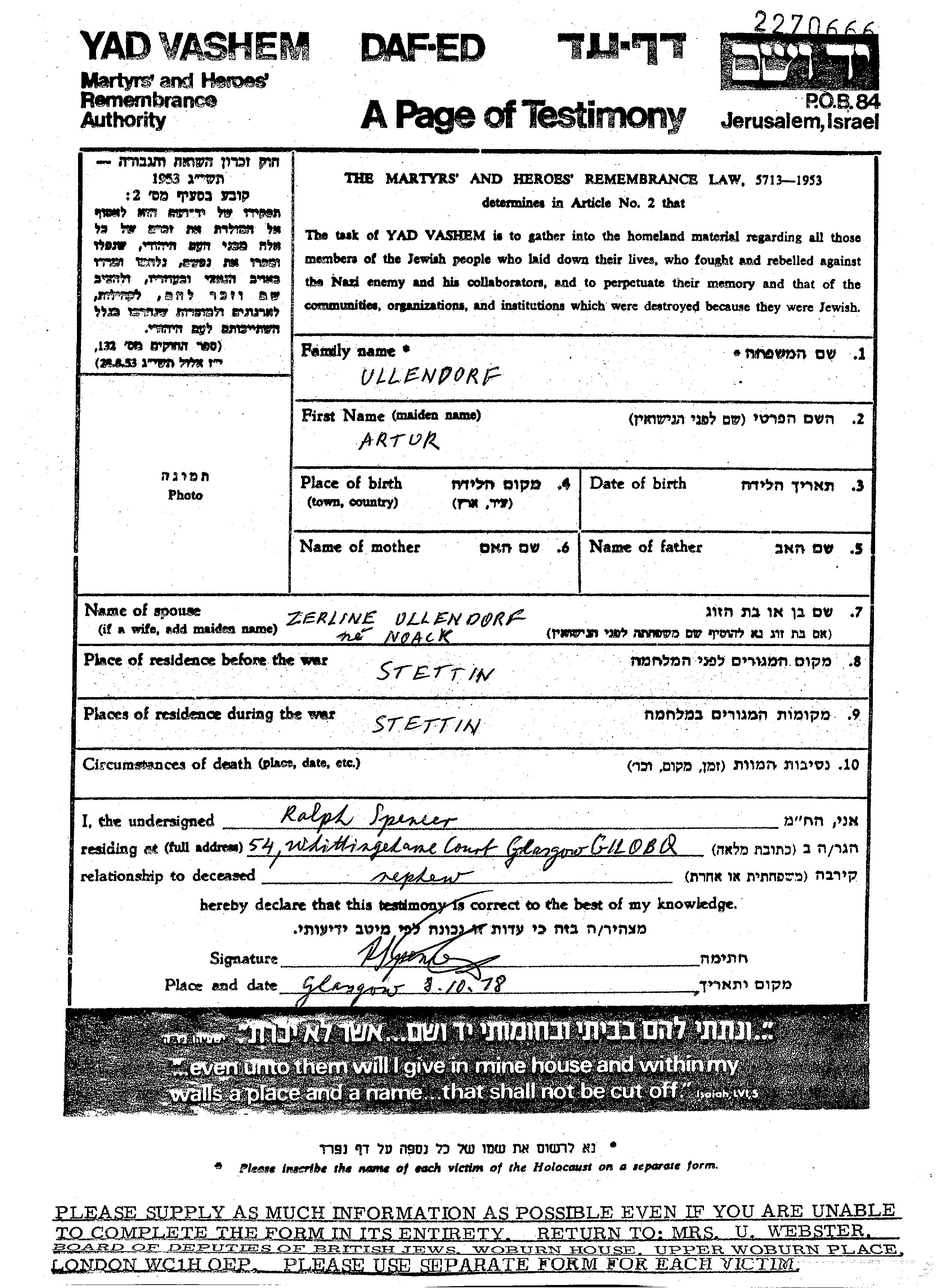 Aufenthaltsort während des Krieges/Schoah