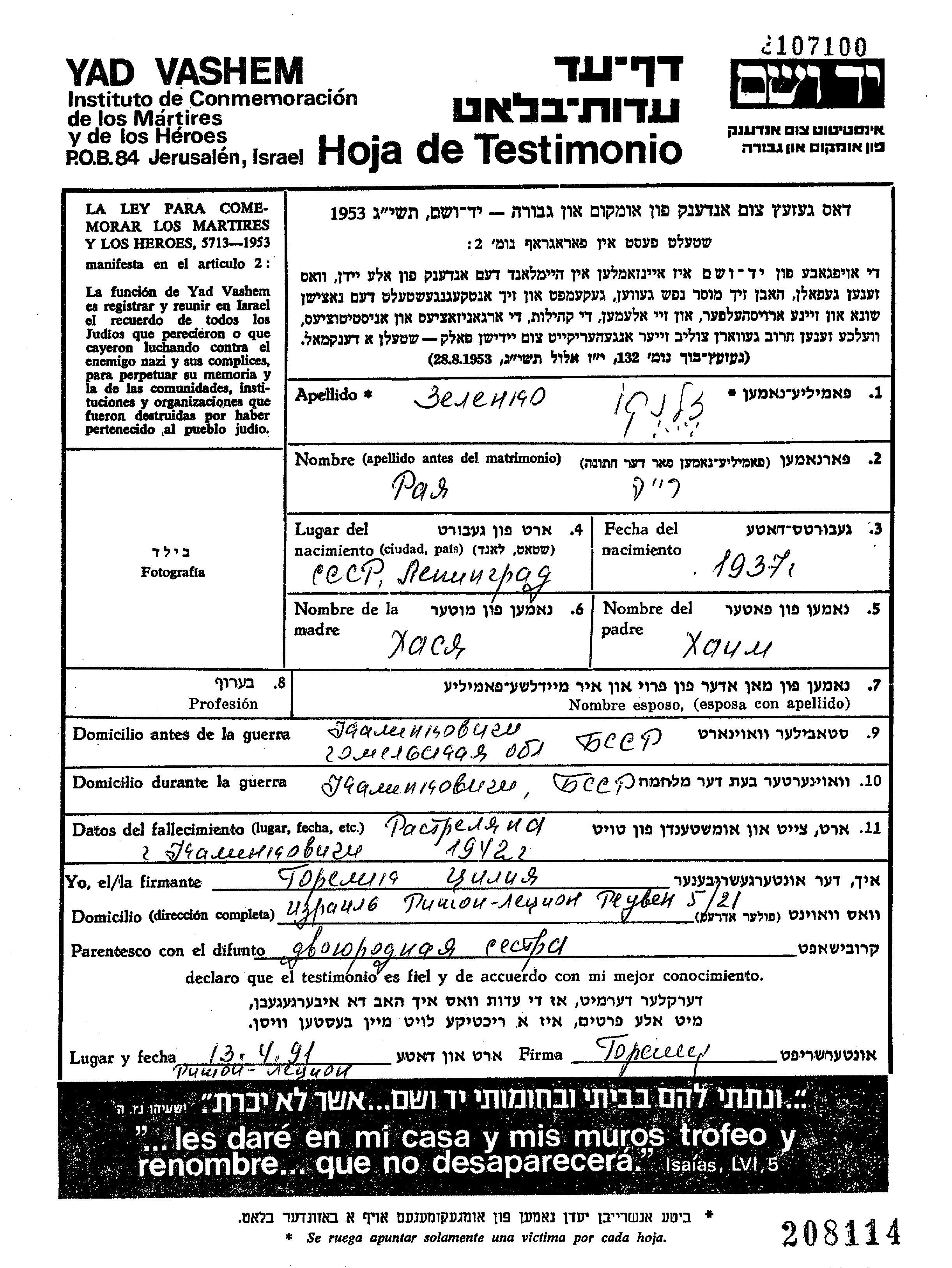 Zelenko Raya unbekannter Ort, Gedenkblatt