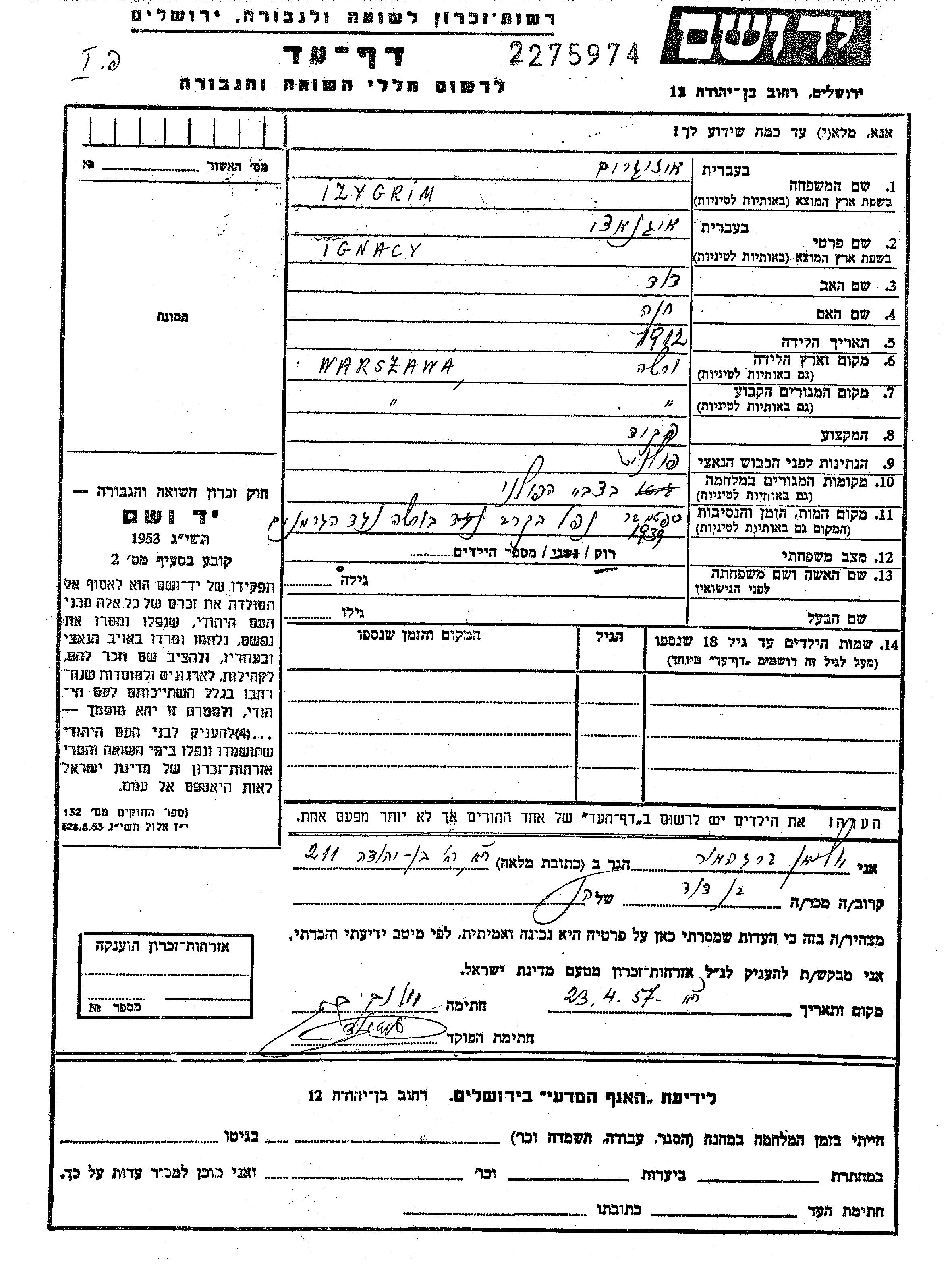 Aufenthaltsort während des Krieges/Schoah