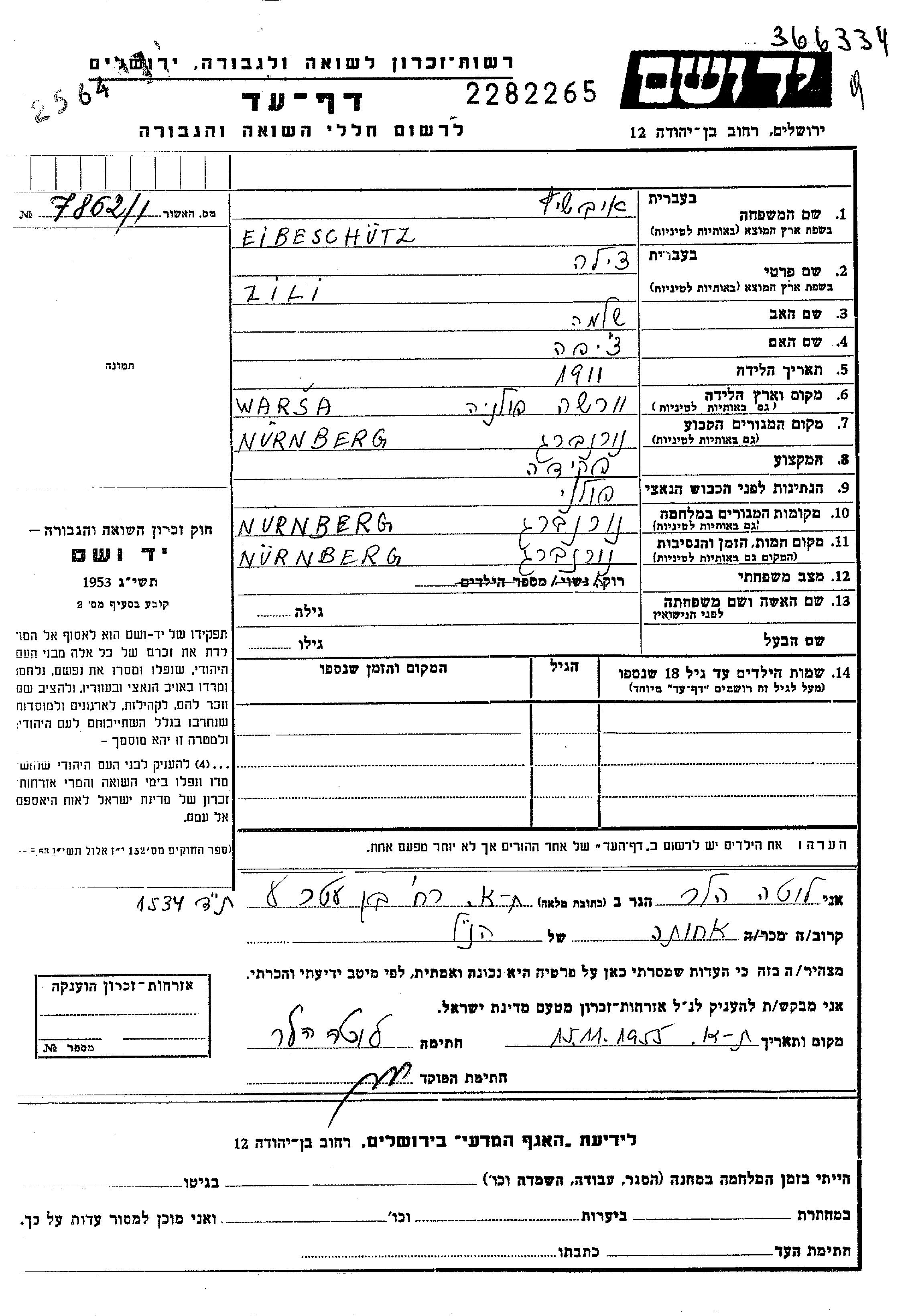 Zili wurde in der Schoah ermordet. Todesort: Nuernberg, Deutsches Reich.