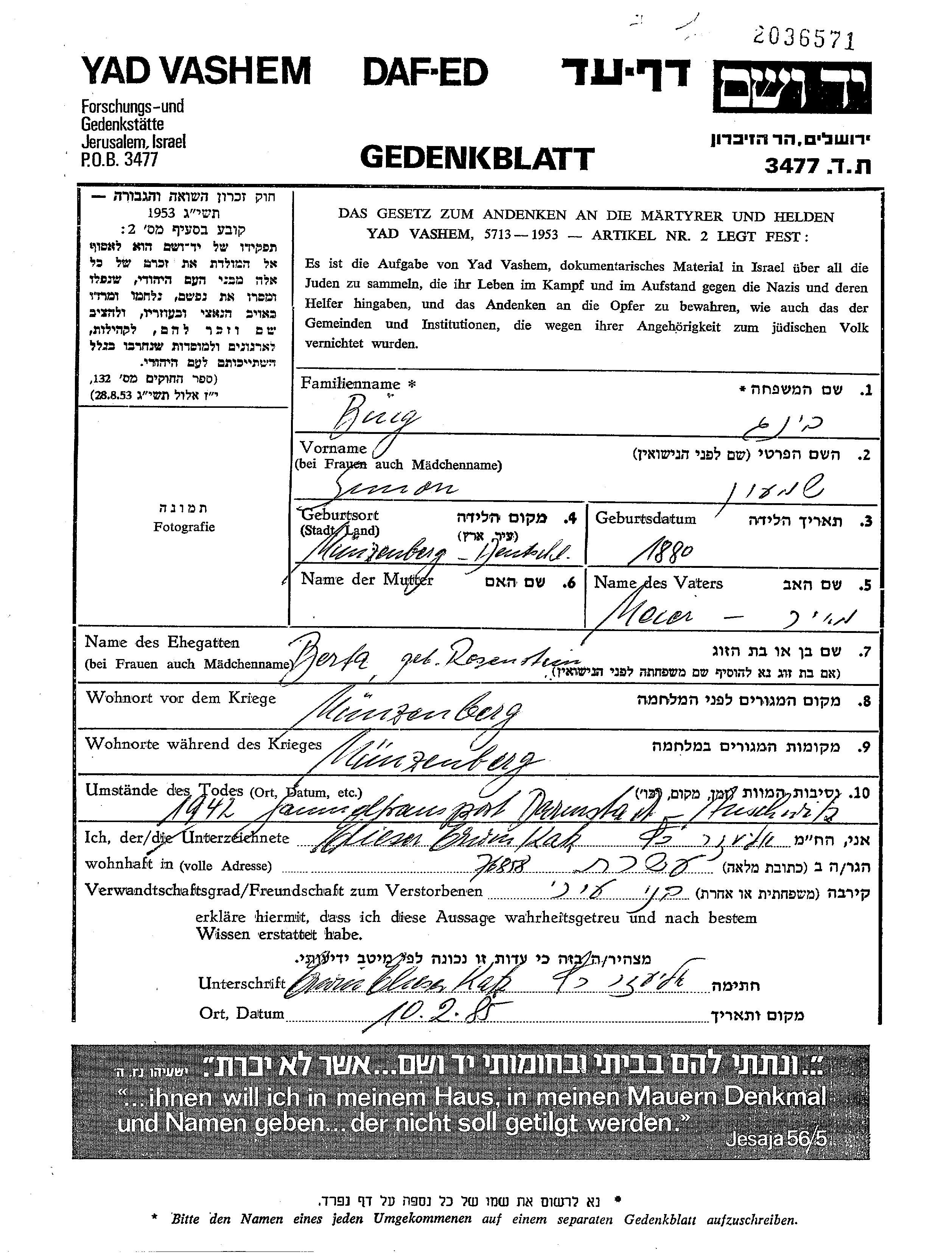 Suche nach einem Todesjahr im Zeitraum der Holocaust: 1933 bis 1945. Bitte wählen Sie 'Exakt' im Auswahlmenü, um nur nach einem einzelnen Jahr zu suchen, alternativ können Sie die flexibleren Optionen '+/- 2 Jahre' oder '+/- 5 Jahre' wählen.