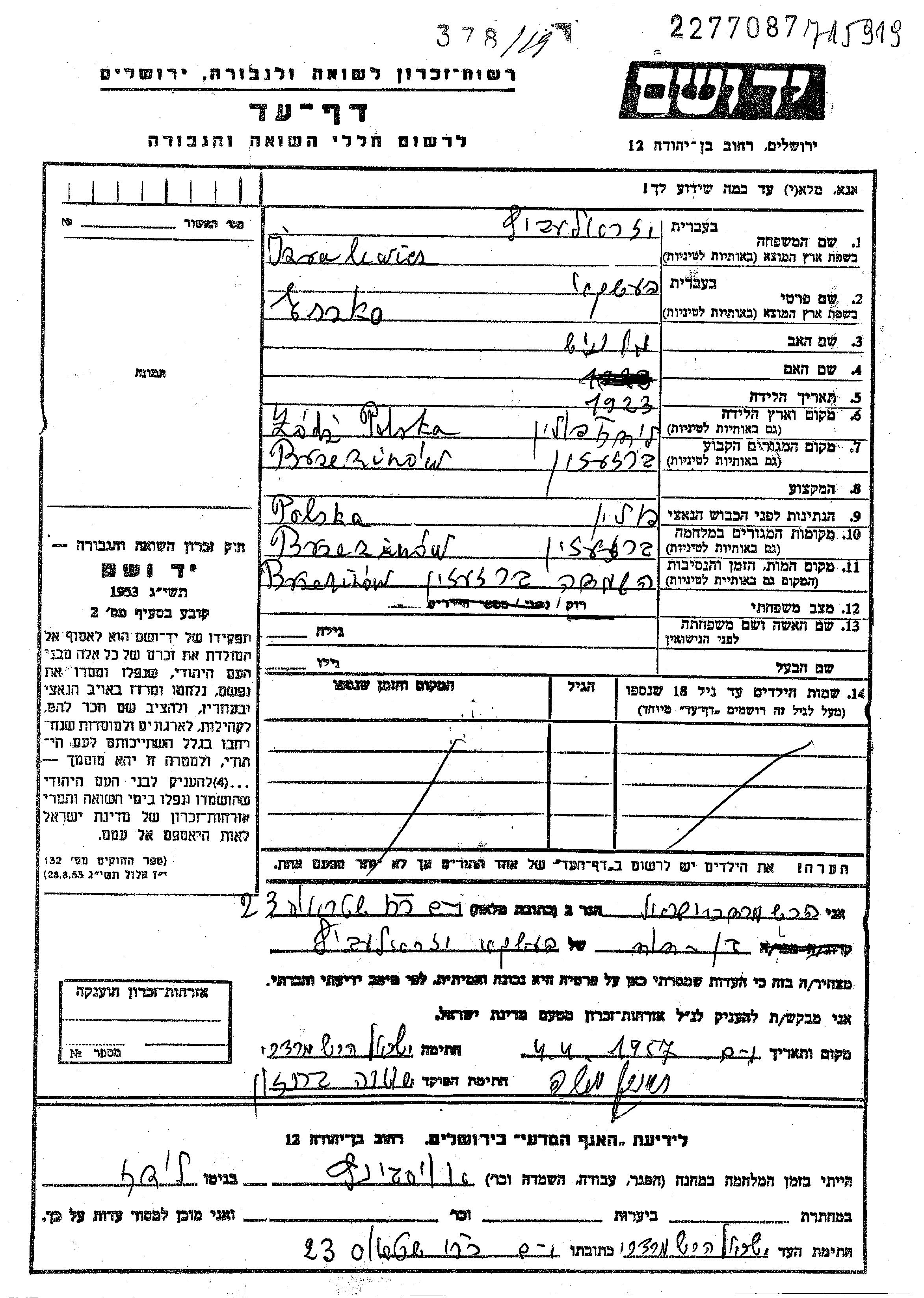 Izralewicz Eszko Heshka 1923 Brzenziny, Polen Gedenkblatt