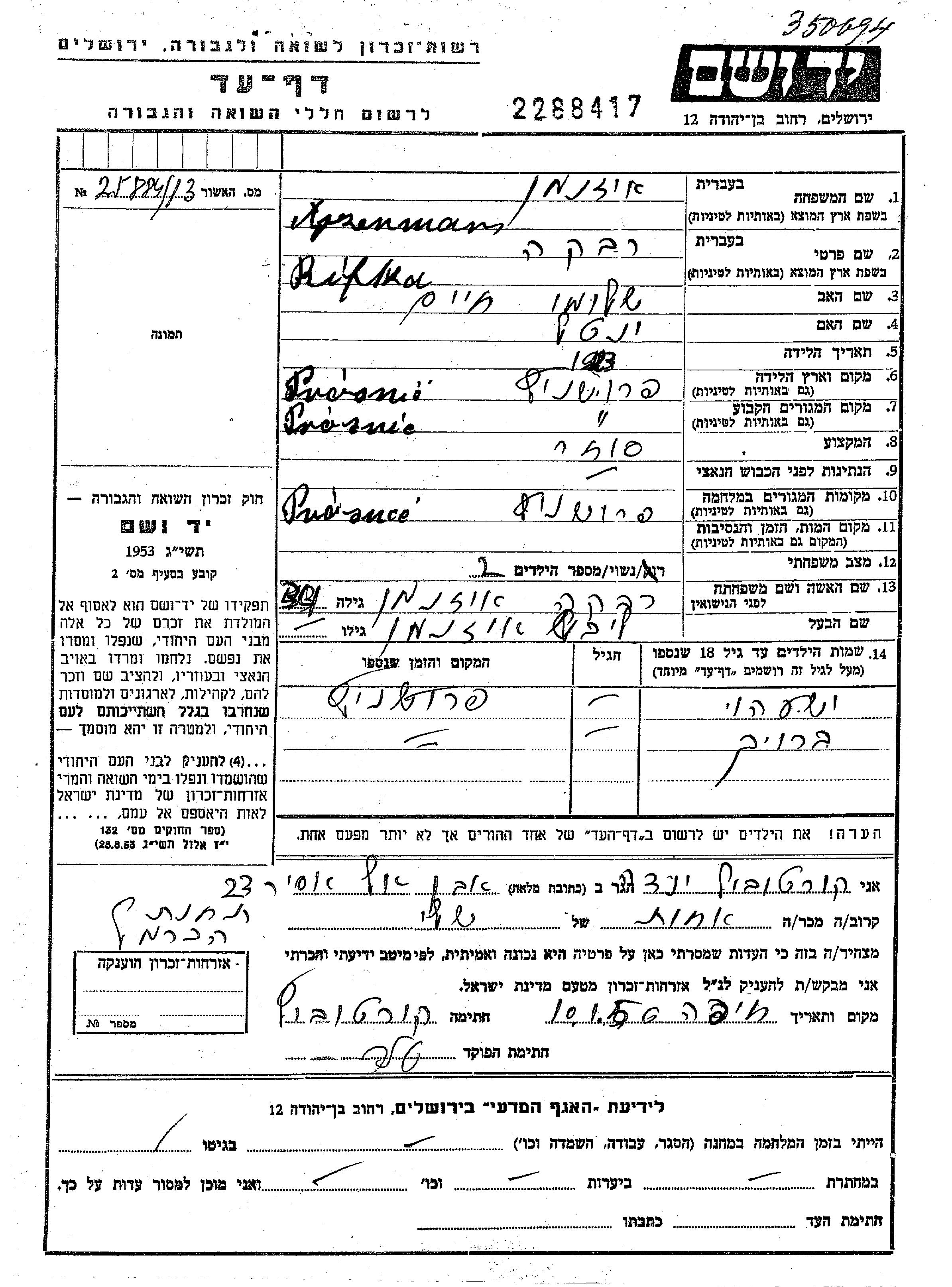 Ajzenman Rivka 1913 Przasnysz, Polen Gedenkblatt
