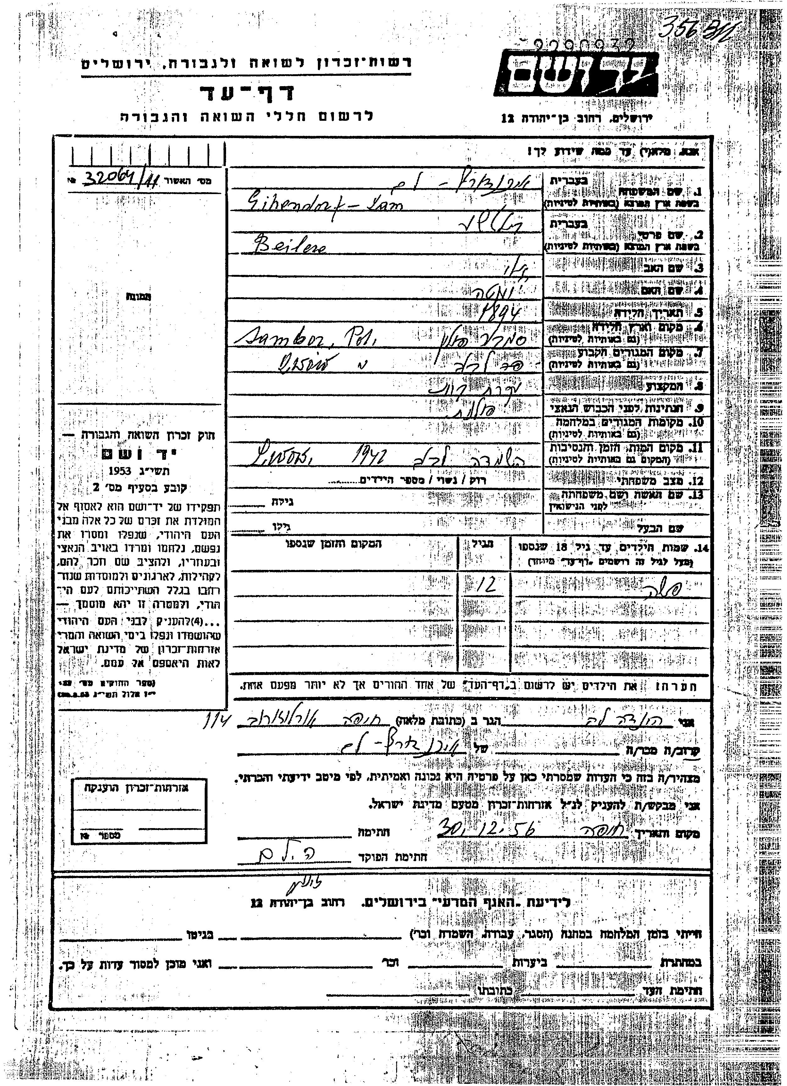 Sasha Eihendorf wurde im Jahr 1930 in Lwow, Polen geboren. Er war der Sohn von Beilcze. Er war Ledig. Vor dem Zweiten Weltkrieg lebte er in Lwow, Polen. Während des Krieges war er in Lwow, Polen.