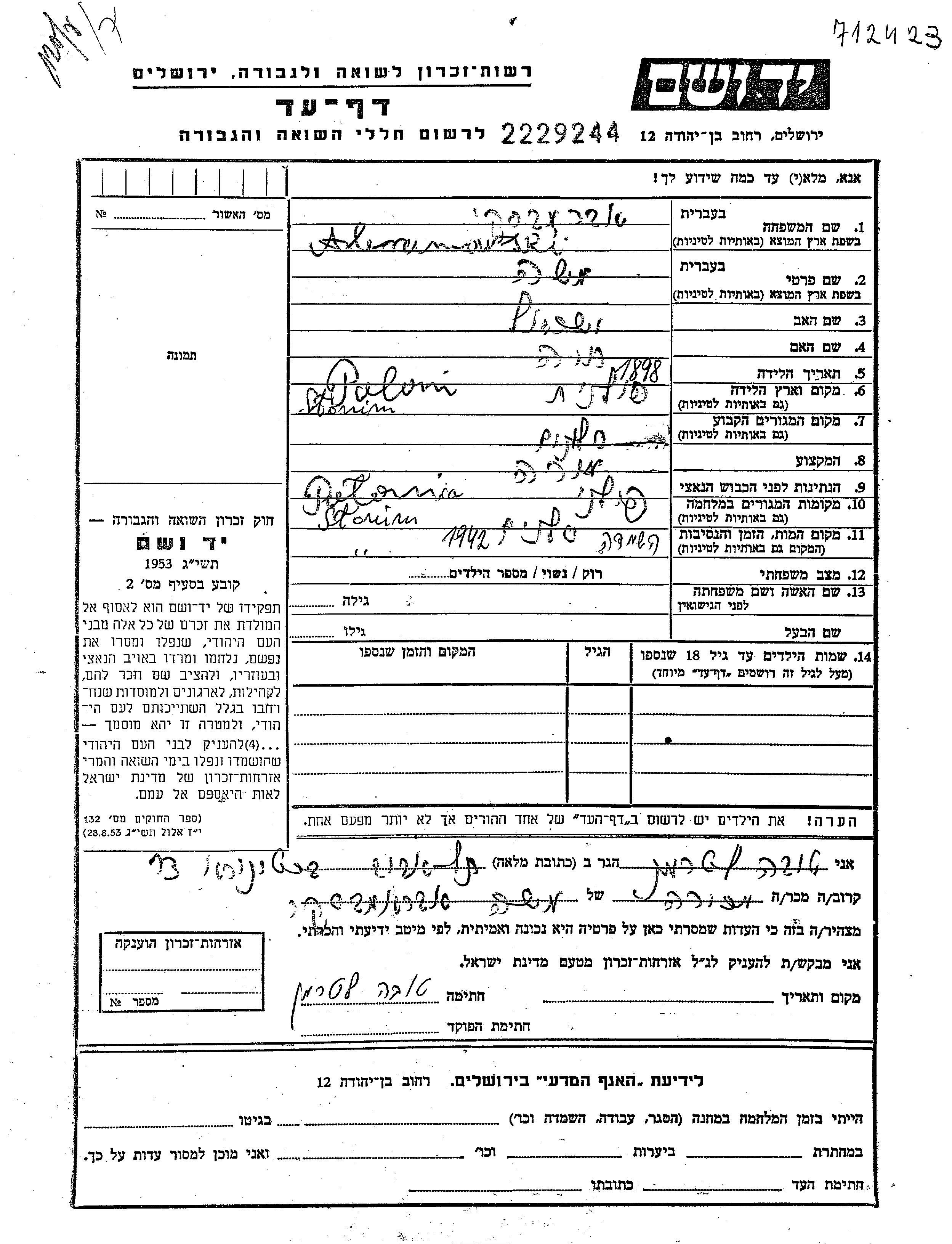 Moshe wurde in der Schoah ermordet. Todesort: Slonim, Polen im Jahr 1942.