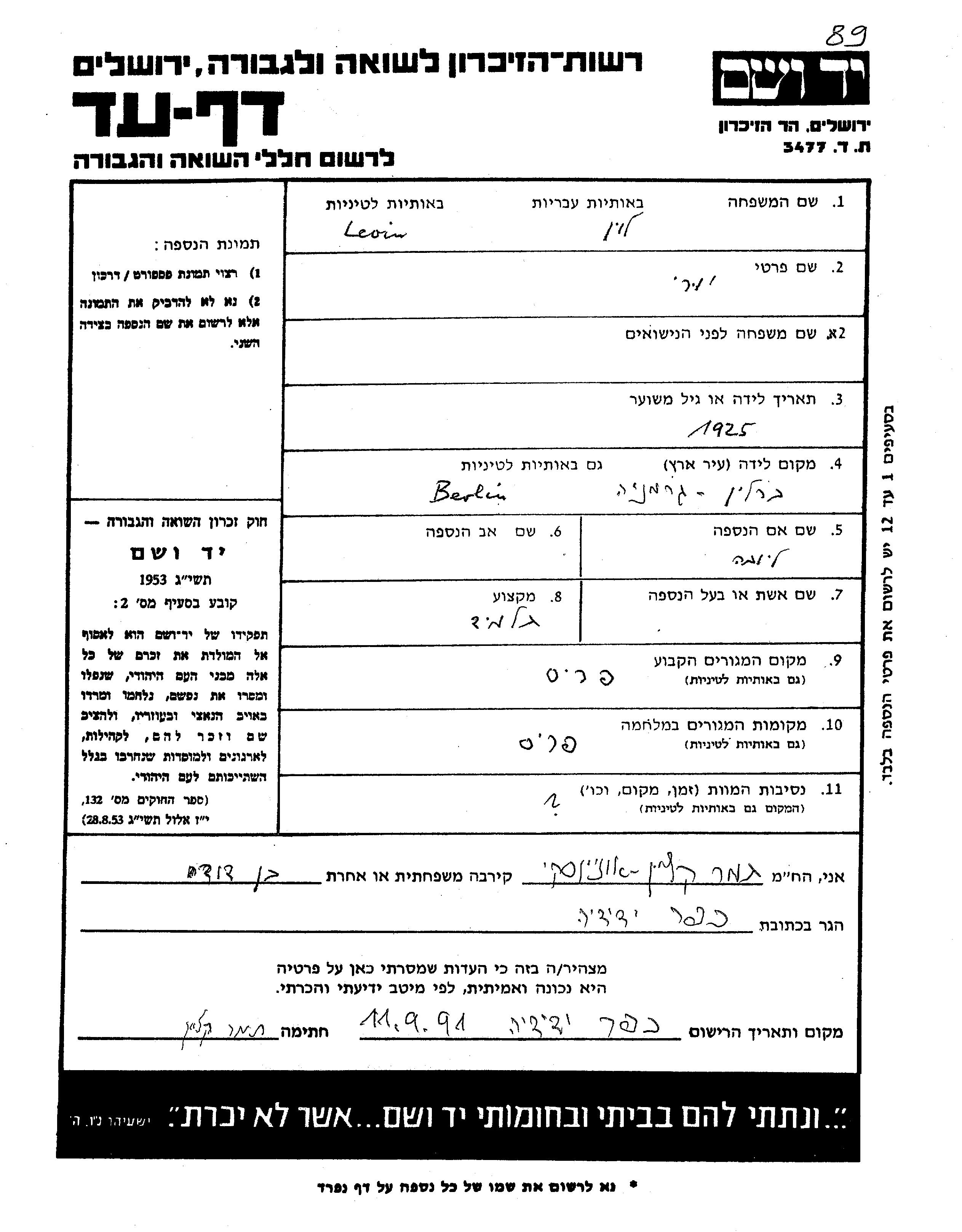 Yuri Levin wurde im Jahr 1925 in Berlin, Deutsches Reich geboren. Er war der Sohn von Liuba, geb. Ozinsky. Er war Kind. Vor dem Zweiten Weltkrieg lebte er in Paris, Frankreich. Während des Krieges war er in Paris, Frankreich.