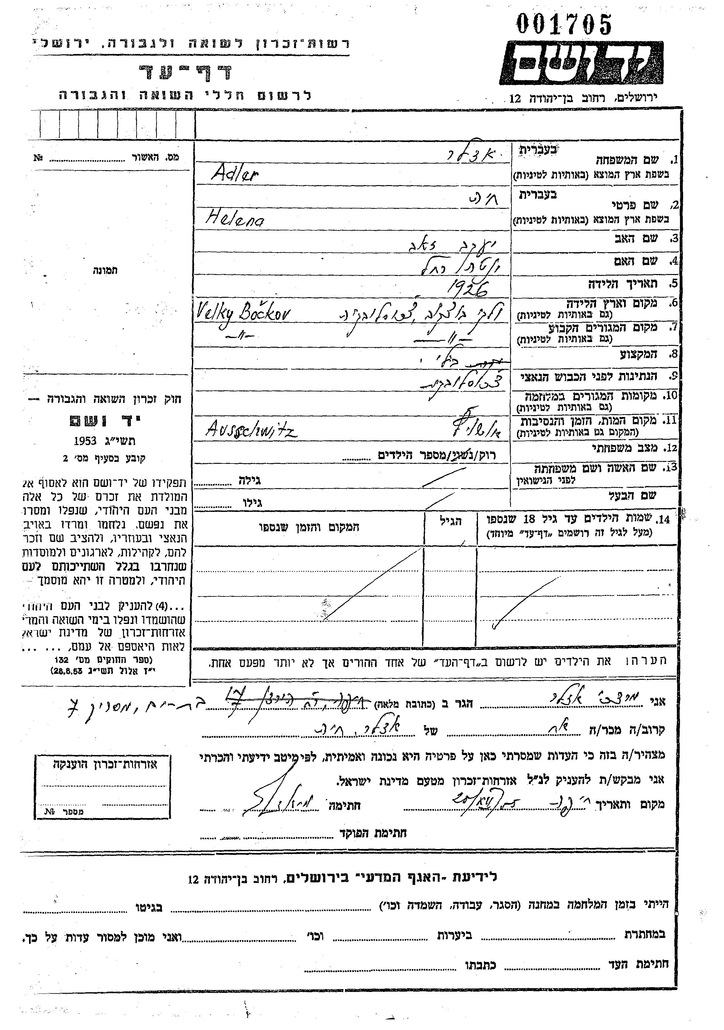 Adler Khaia Helena 1926 Tschechoslowakei Gedenkblatt
