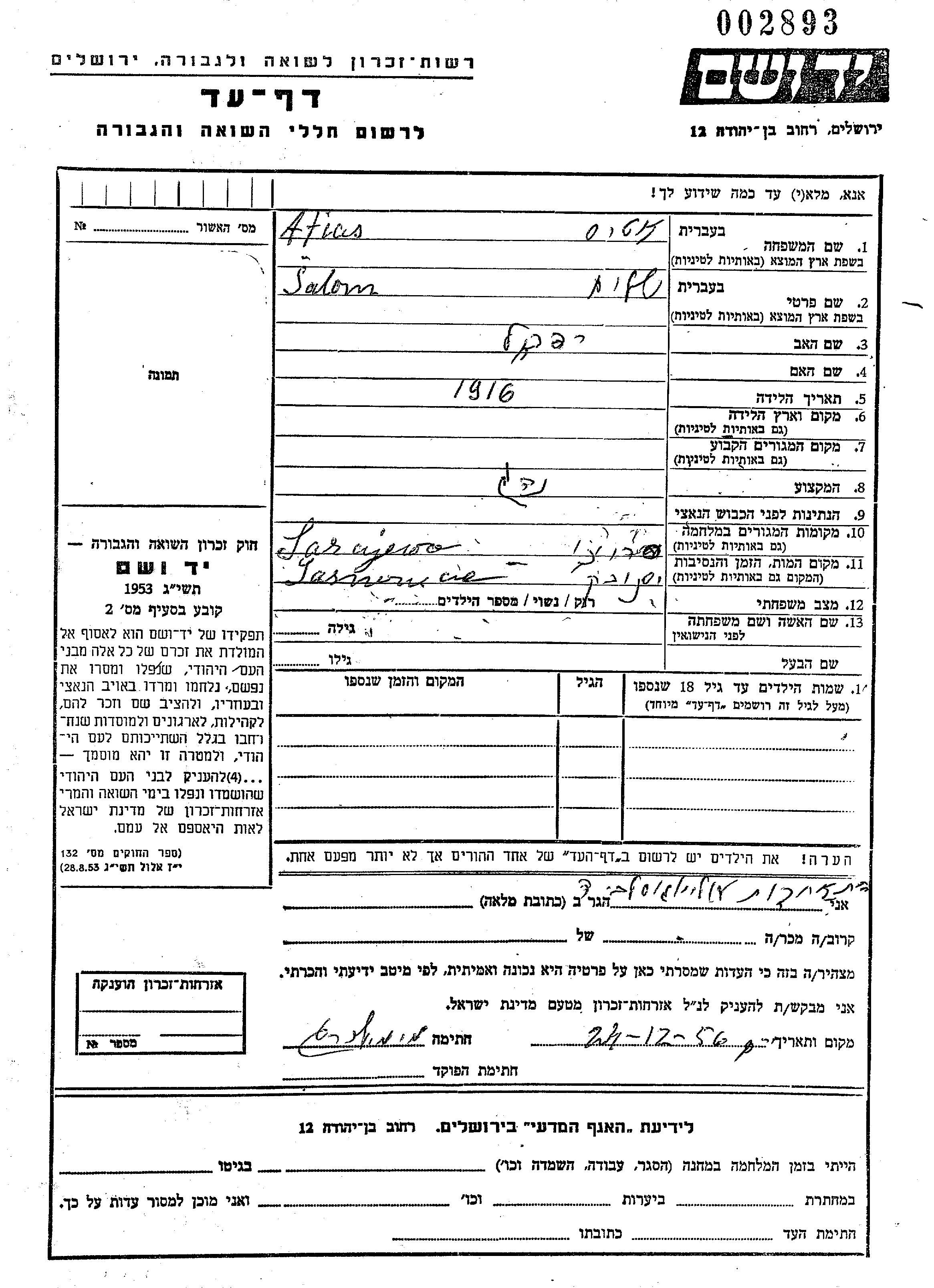 Aufenthaltsort während des Krieges/Schoah