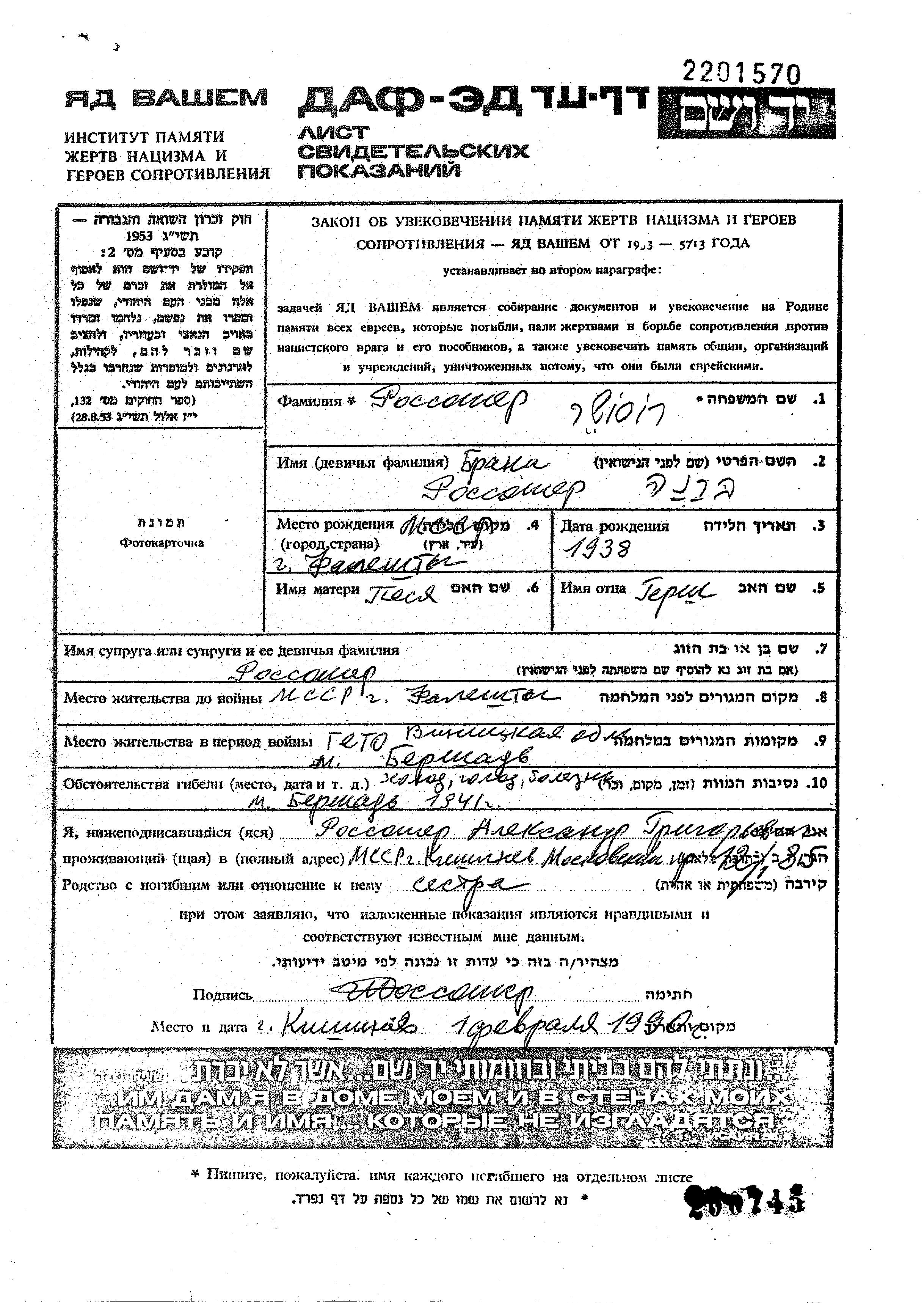 Vorname unbekannt Rosovski wurde in Polen geboren. Vor dem Zweiten Weltkrieg lebte er in Lwow, Polen. Während des Krieges war er in Lwow, Polen.