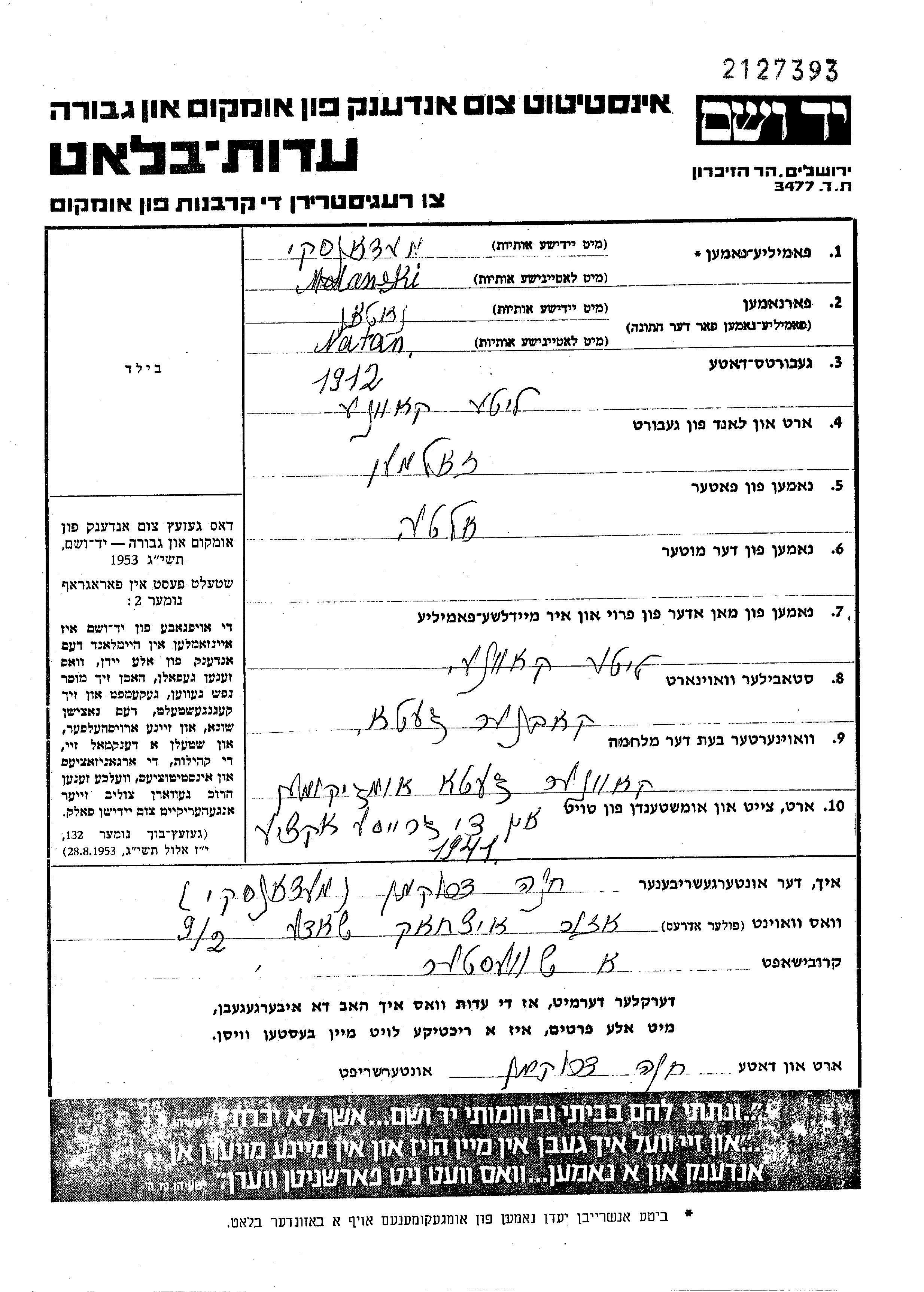 Medanski Natan 1912 Kowno, Litauen Gedenkblatt