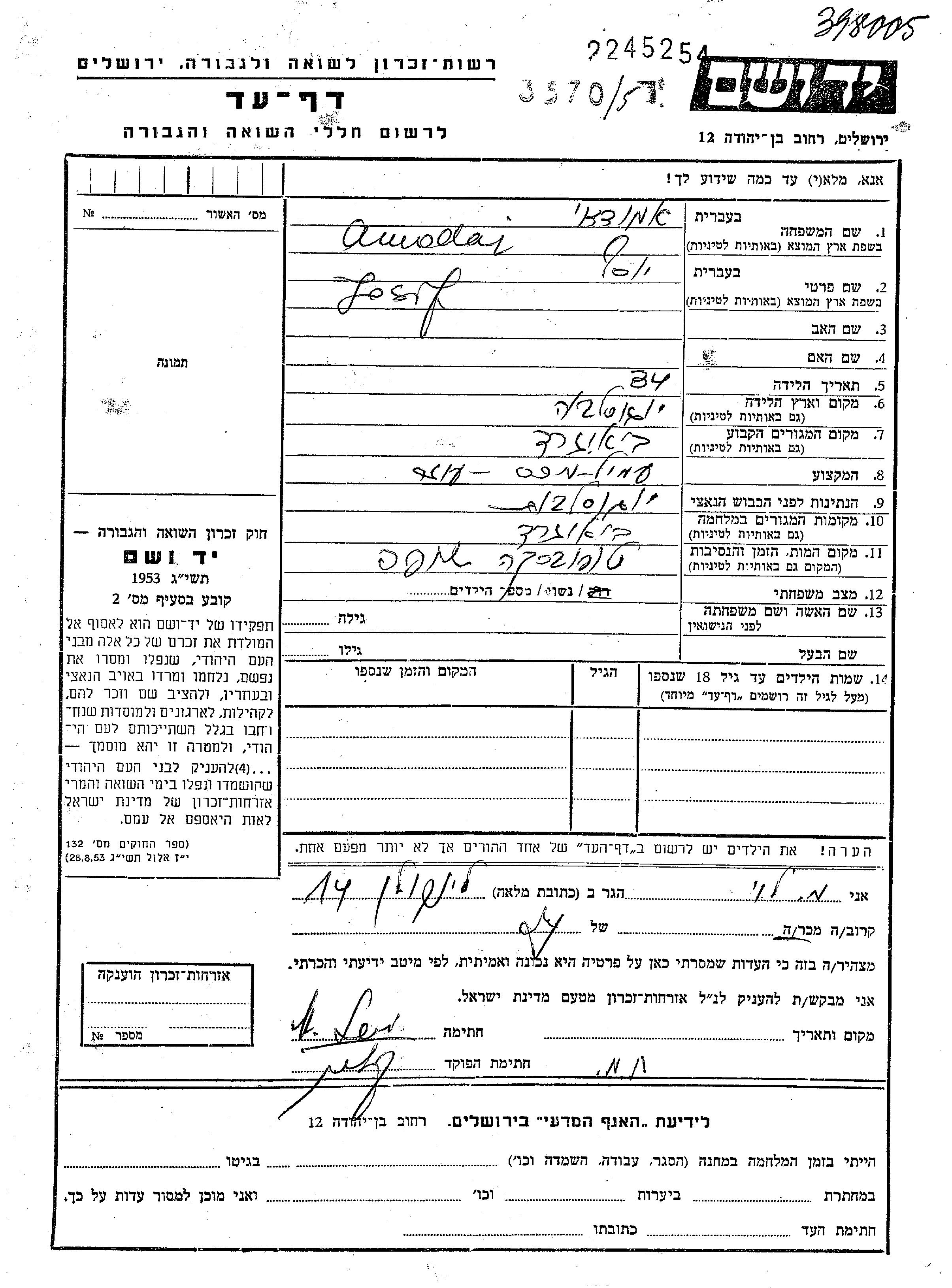 Josef Amodaj wurde in Jugoslawien geboren. Er war Zollagent und Verheiratet. Vor dem Zweiten Weltkrieg lebte er in Beograd, Jugoslawien. Während des Krieges war er in Beograd, Jugoslawien.