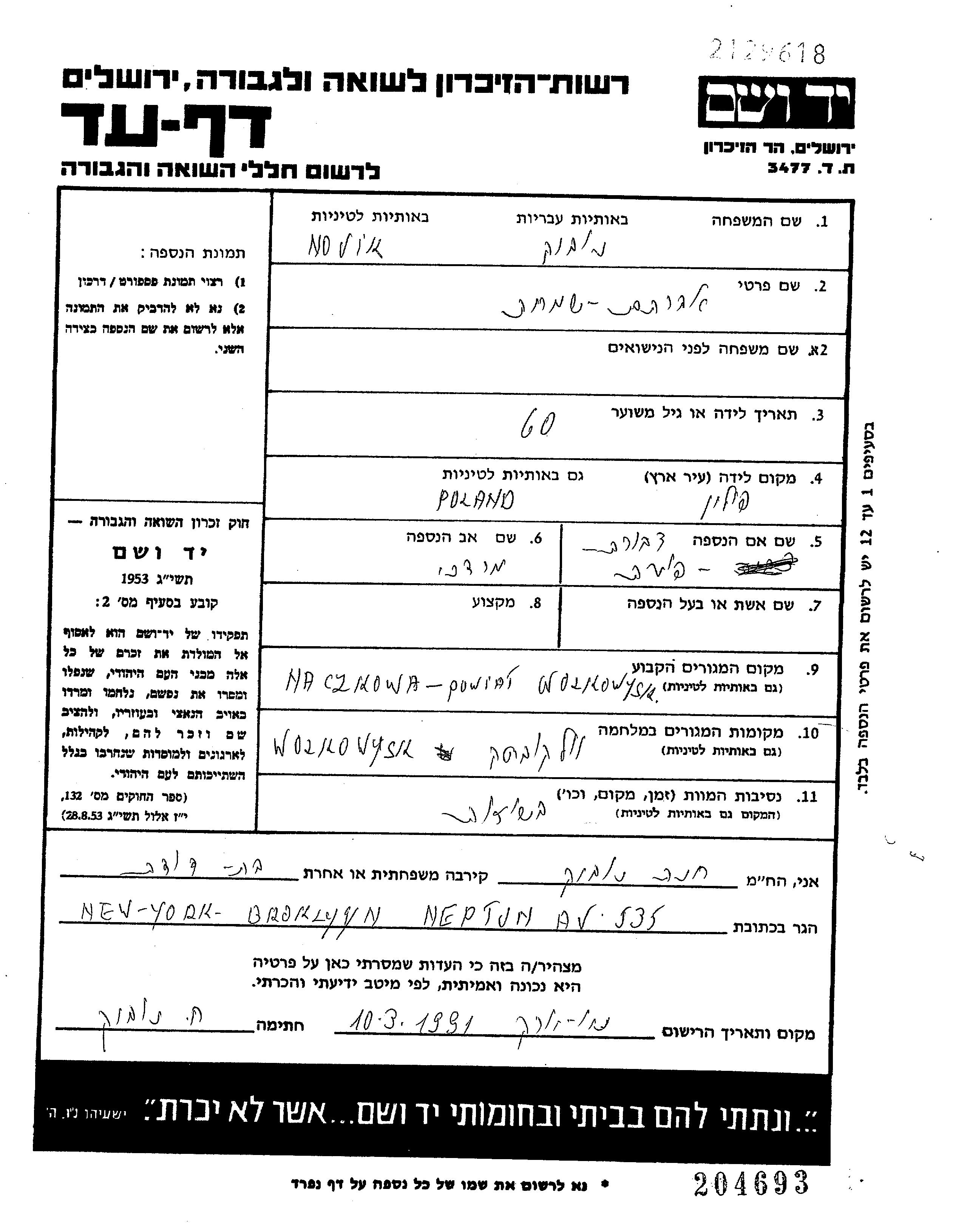 Novik Abrakham Simkha Wolkowysk, Polen Gedenkblatt