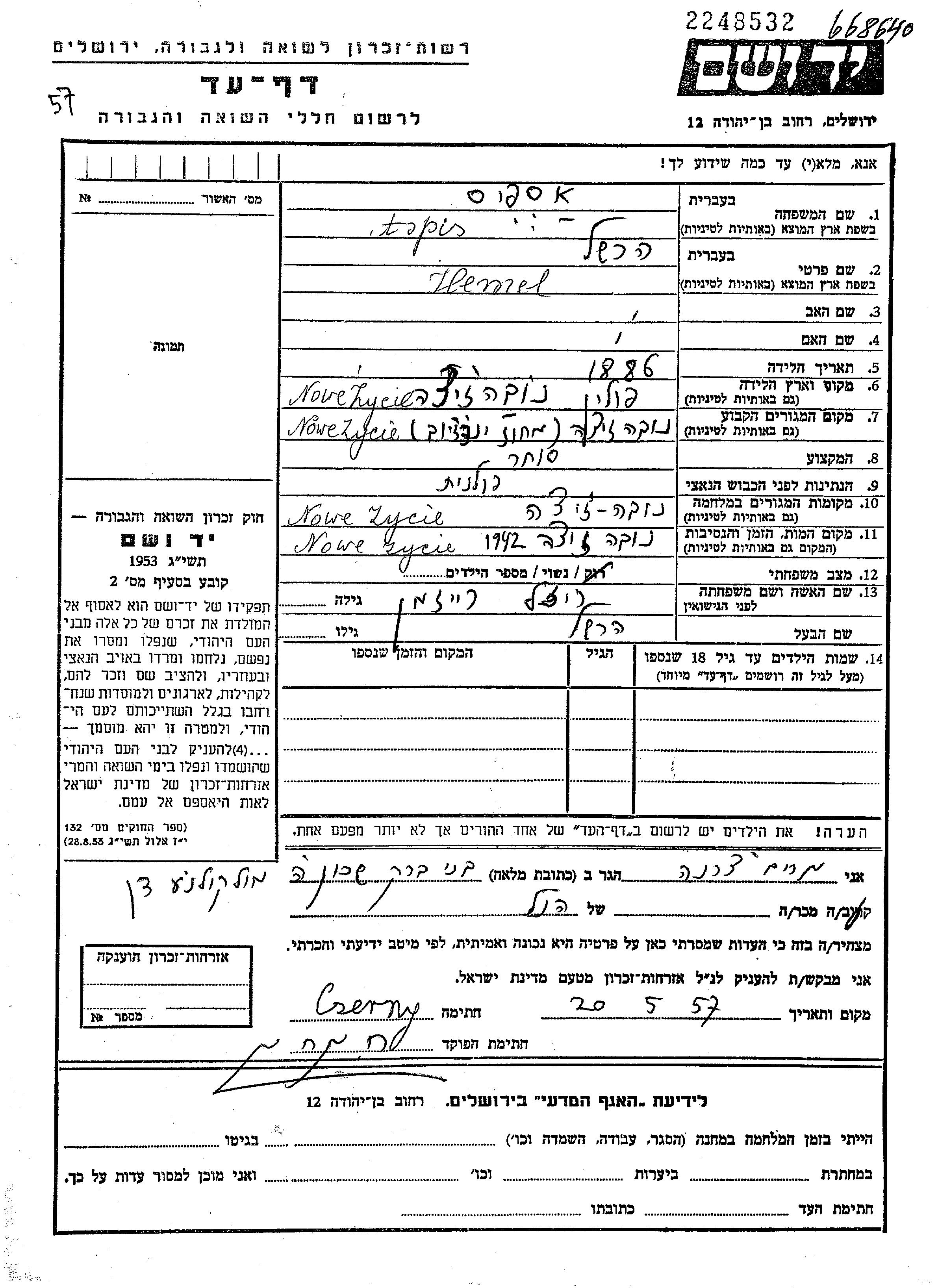 Herszel wurde in der Schoah ermordet. Todesort: Nawarzyce, Polen im Jahr 1942.