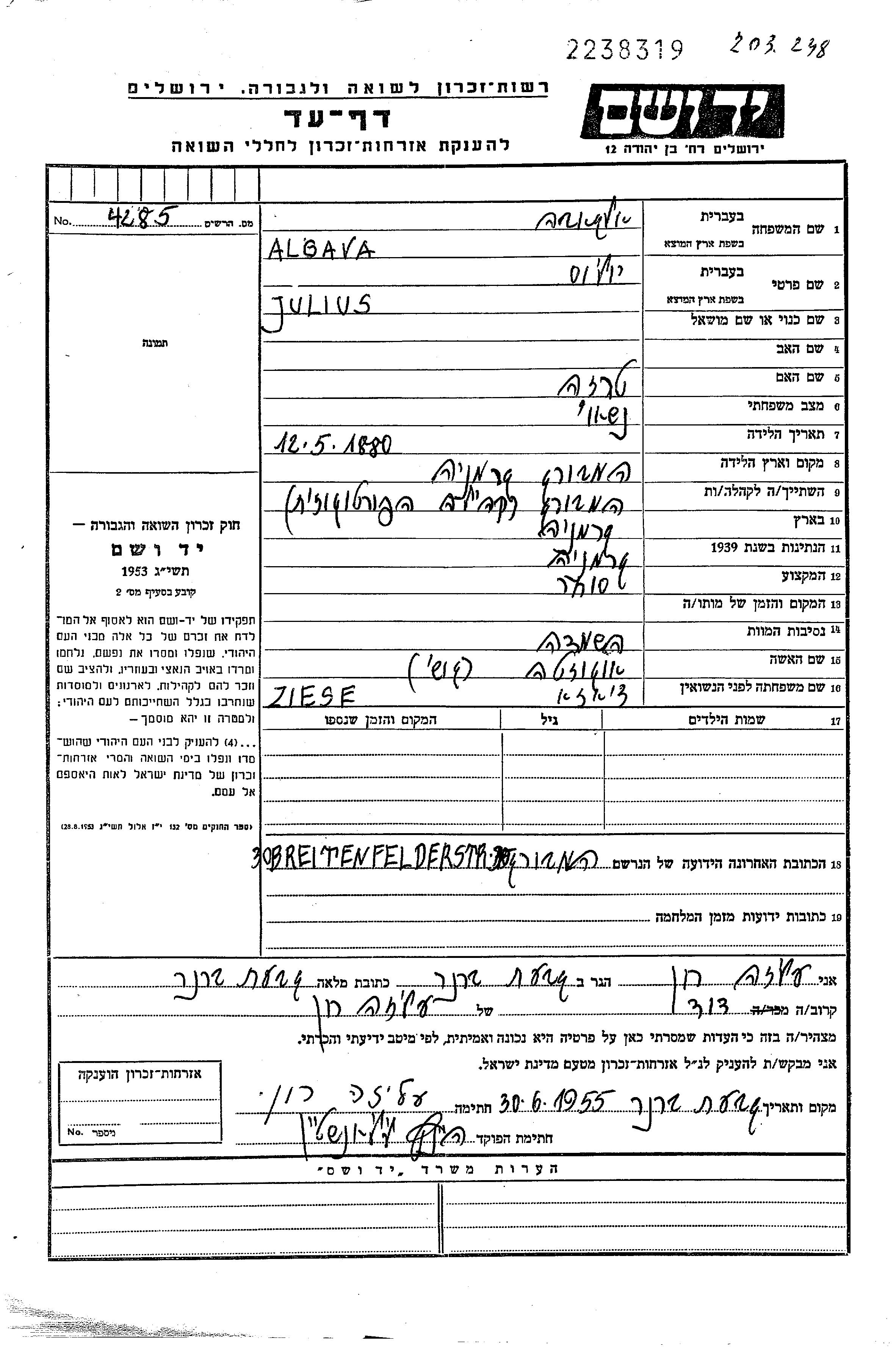 Julius Algava wurde im Jahr 1880 in Hamburg, Deutsches Reich geboren. Er war der Sohn von Tereza. Er war Kaufmann/-frau und mit Augusta Verheiratet. Vor dem Zweiten Weltkrieg lebte er in Hamburg, Deutsches Reich.