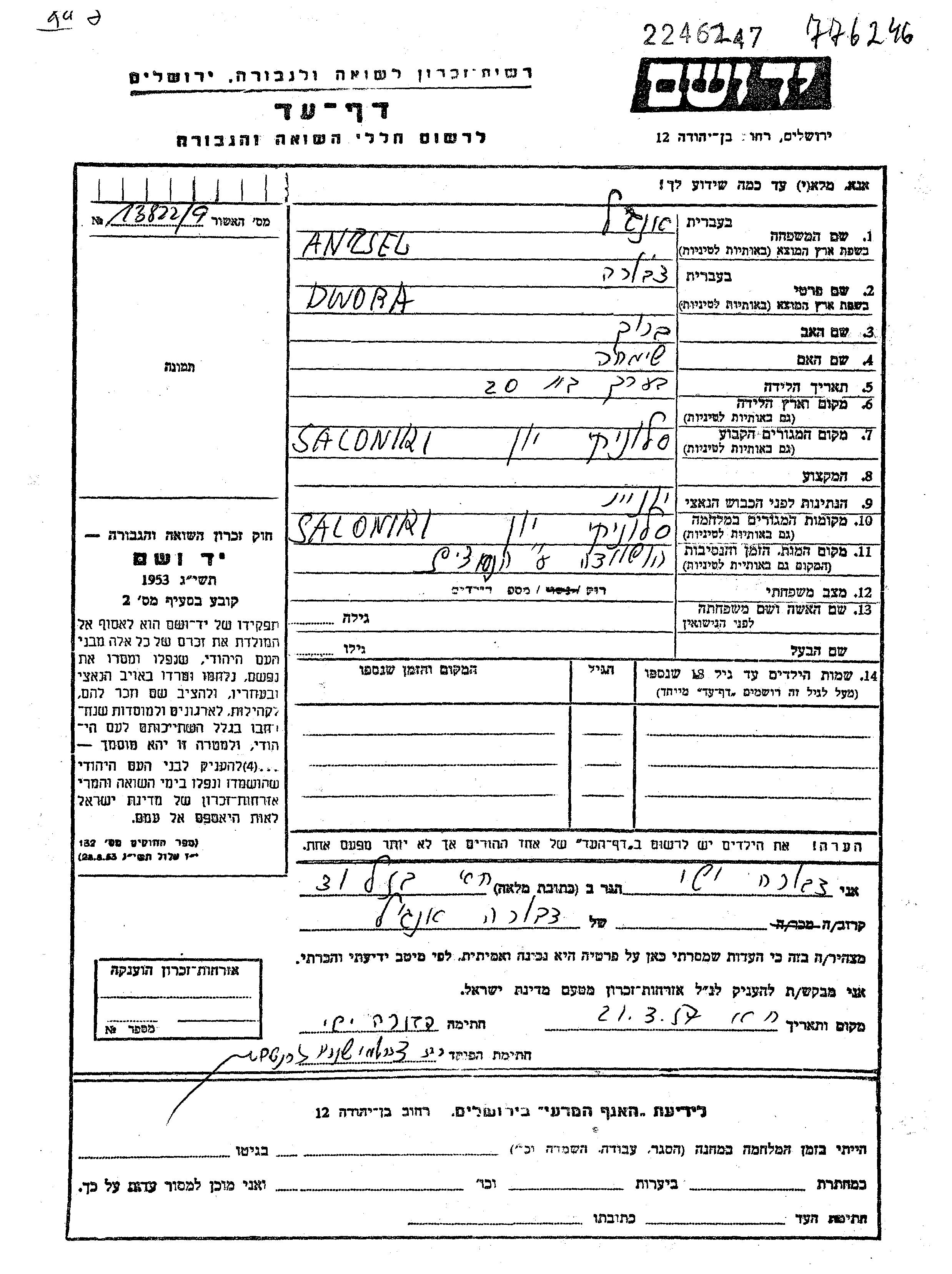 Dvora wurde in der Schoah ermordet.