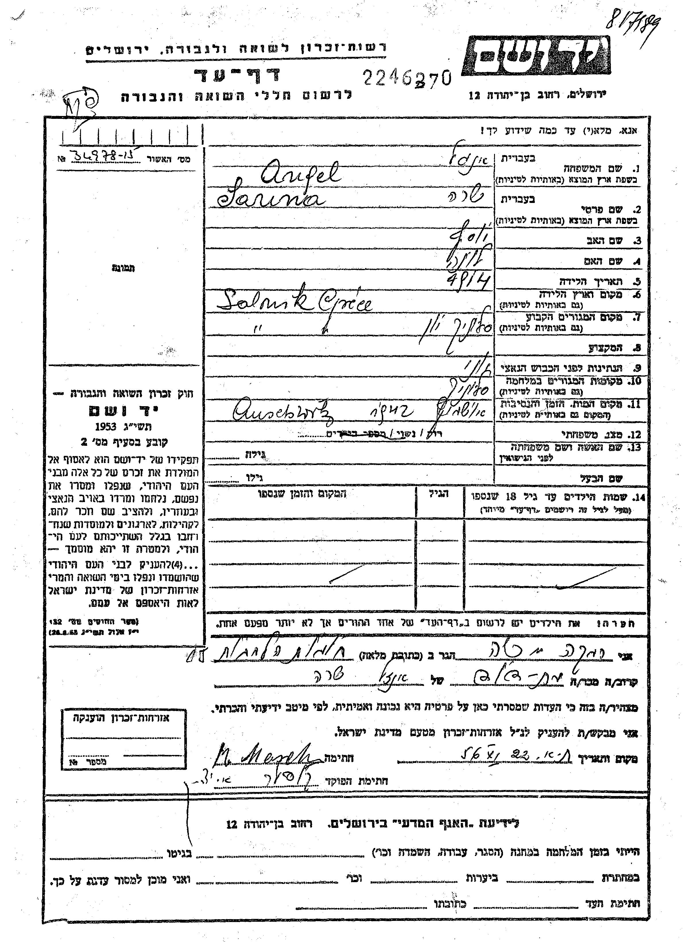 Sarina wurde in der Schoah ermordet. Todesort: Auschwitz, Polen im Jahr 1942.
