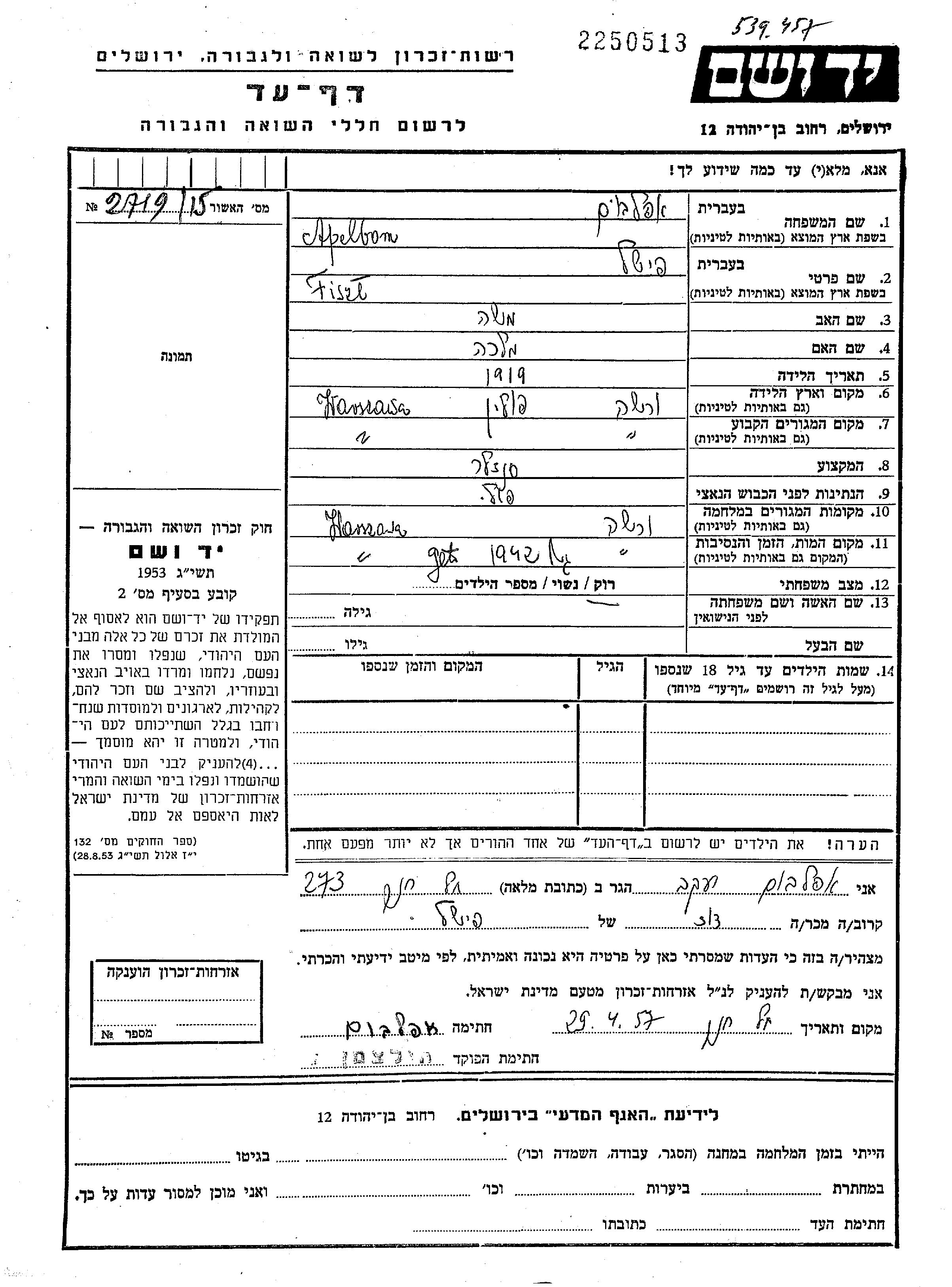 Fishel wurde in der Schoah ermordet. Todesort: Warszawa, Polen im Jahr 1942.