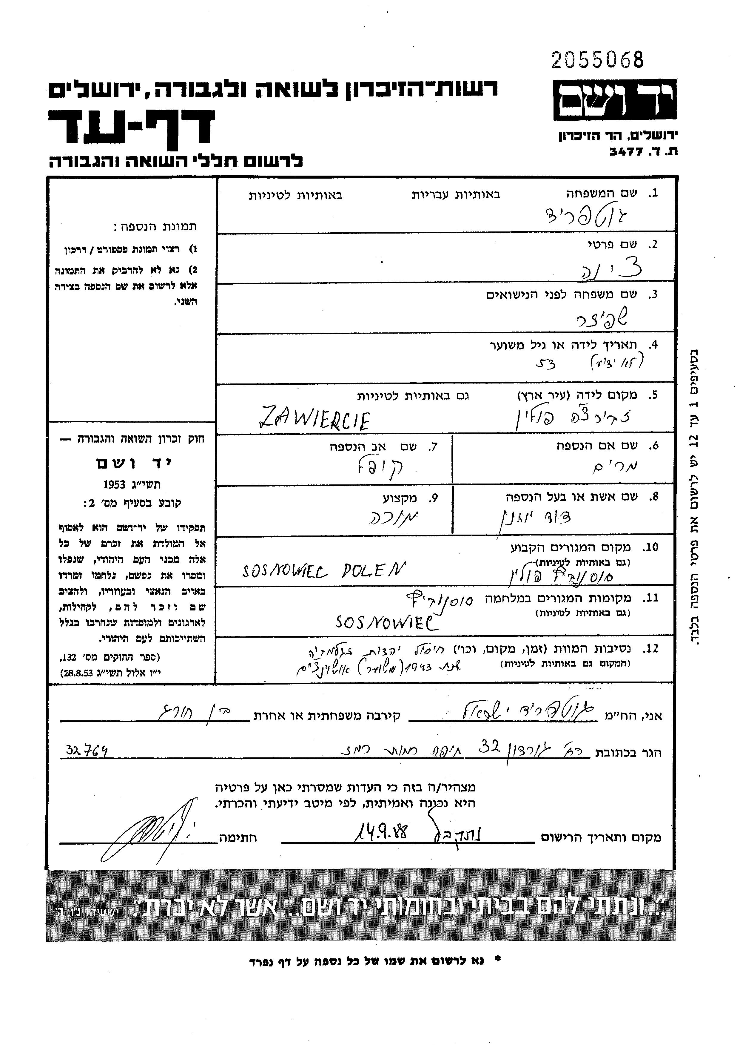 Tzina wurde in der Schoah ermordet. Todesort: Auschwitz, Polen im Jahr 1943.