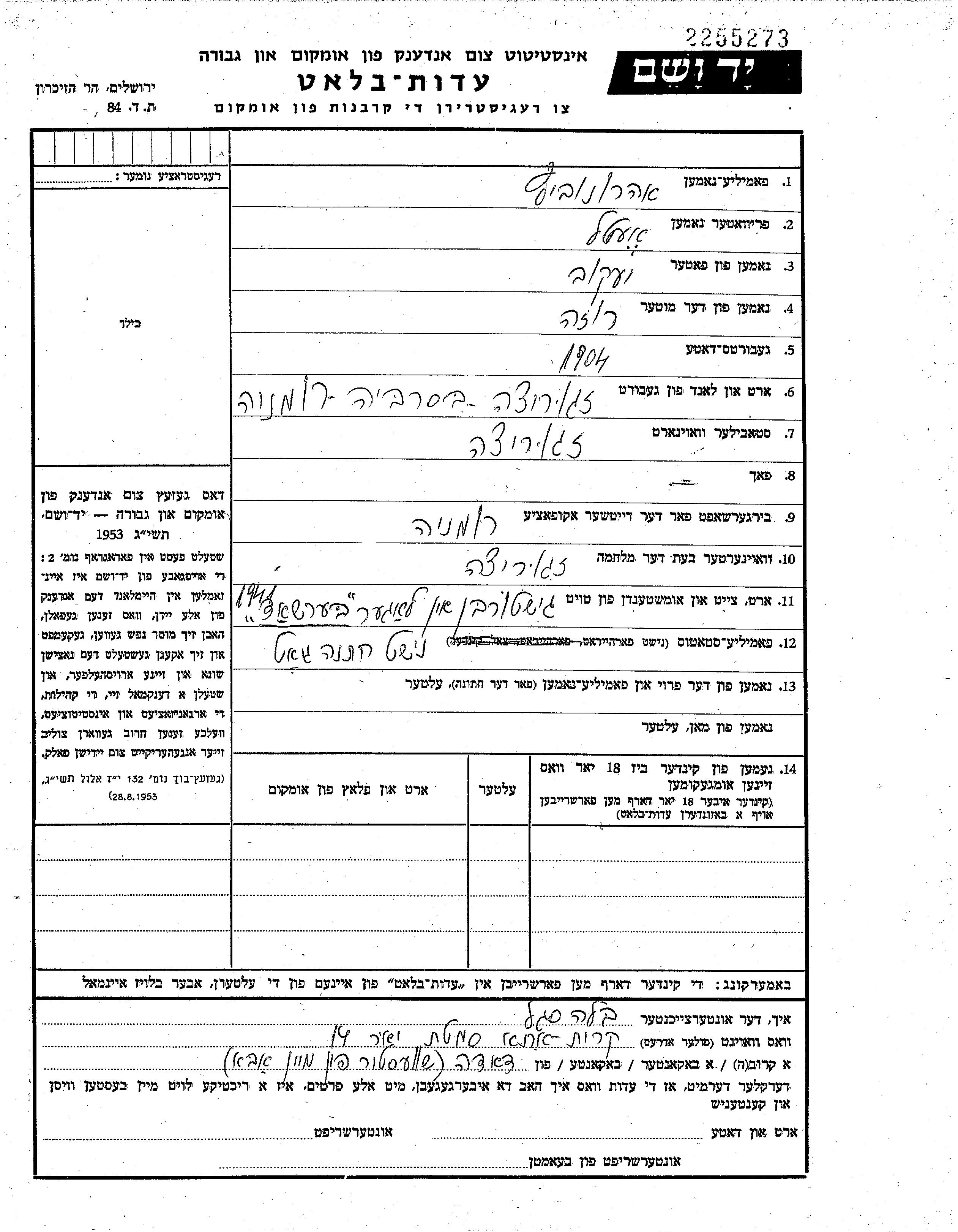 Aharonovich Etel 1904 Zgurita, Rumänien Gedenkblatt